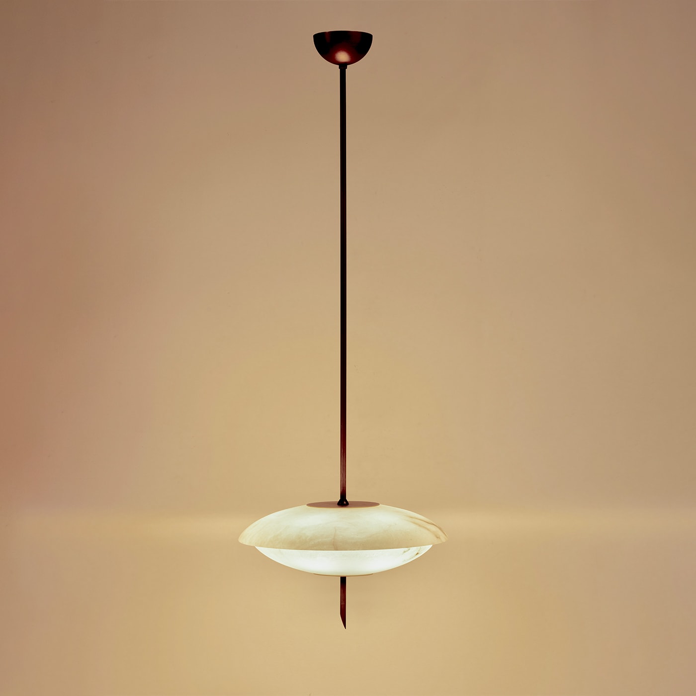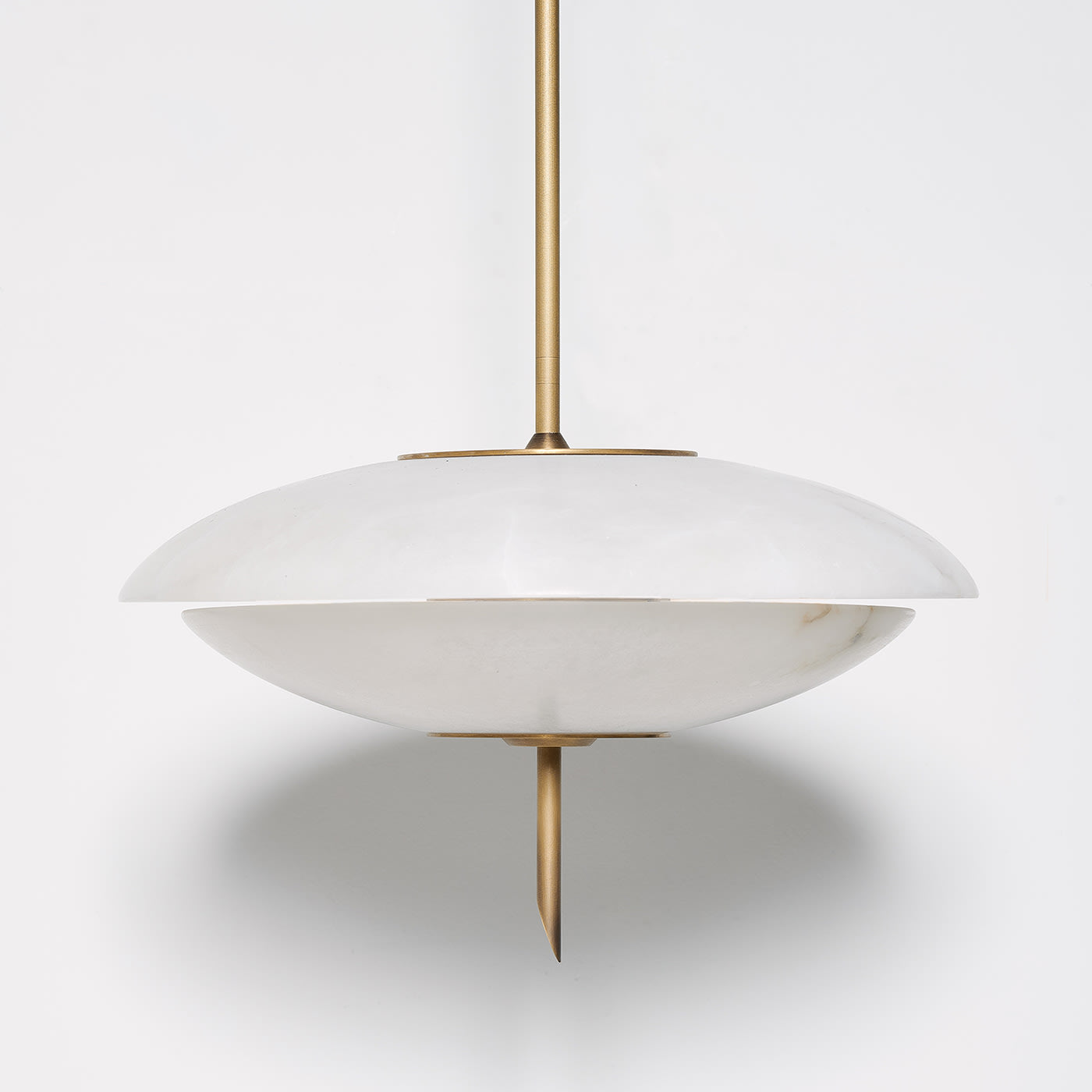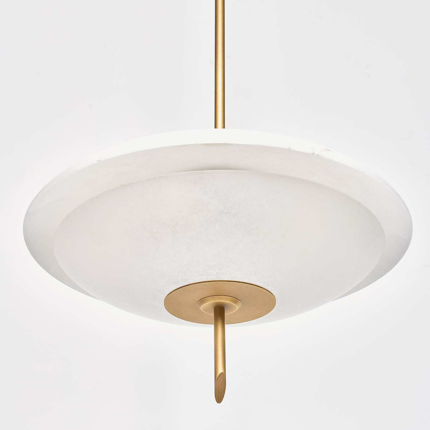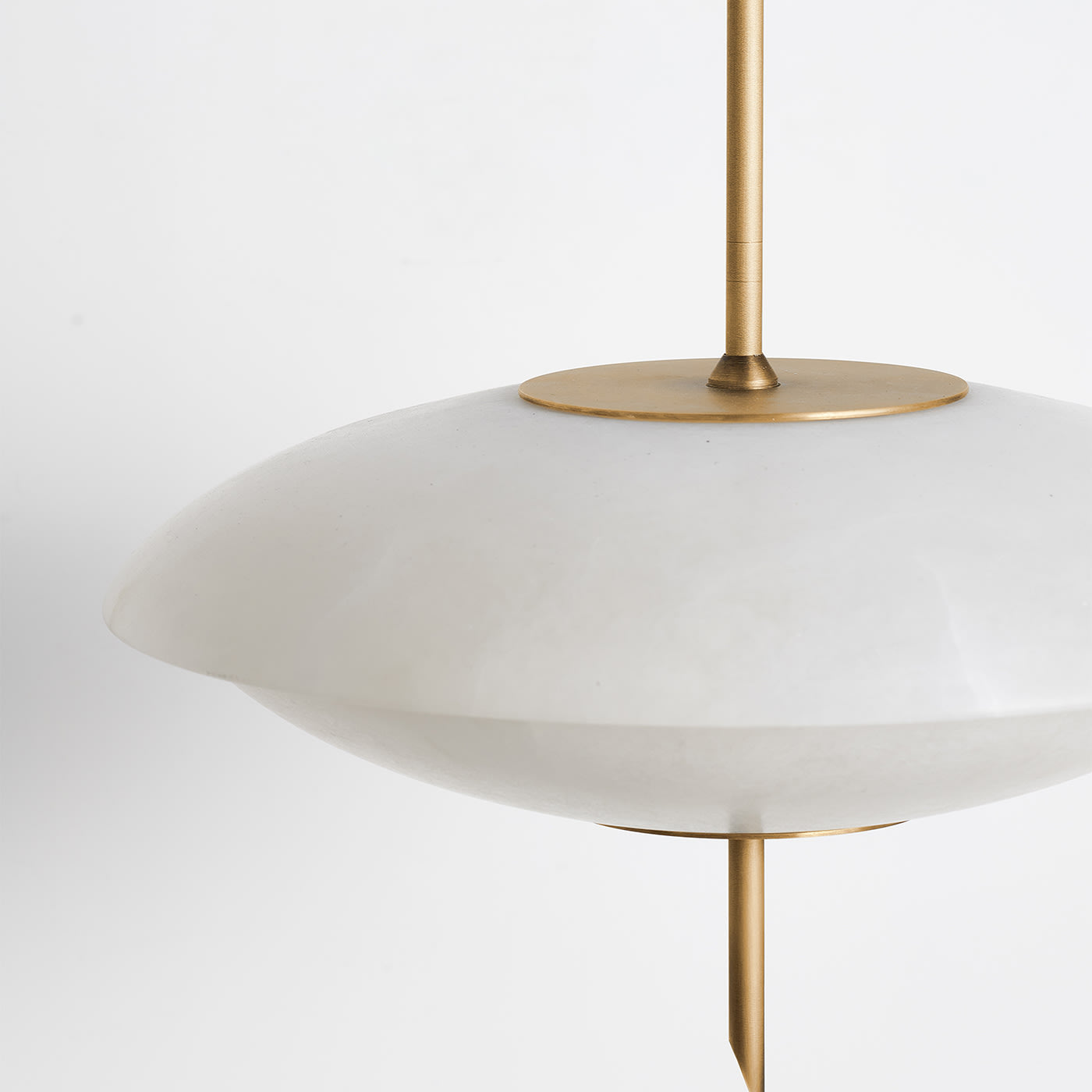 Люстра Cosmos вдохновлена элегантной эстетикой дизайна 1950-х годов, воплощая дух новаторства космической эры. Выпуклые алебастровые пластины мягко рассеивают тёплый свет, создавая уютную атмосферу в любом помещении. Корпус из матовой латуни добавляет теплоты и изысканности, подчёркивая естественную красоту алебастра. Отличительной особенностью является уникальное латунное навершие в форме ломтика салями, которое добавляет индивидуальности и элегантности.