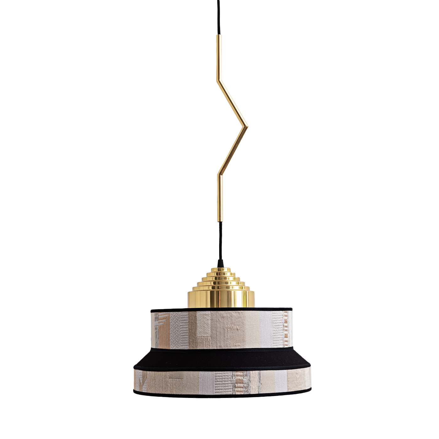 Aperitivo — подвесной светильник, вдохновлённый атмосферой итальянских баров 1930-х годов. Потягивая Campari в окружении работ Деперо, вы потягиваете его. Aperitivo представлен в трёх цветовых решениях, а геометрический принт Perspective Cavaliere Bayadere создан Hermès. Дизайн также дополнен тёплыми латунными деталями. Размеры абажуров: Ø36 см, высота 27 см. Латунный крючок: высота 40 см.