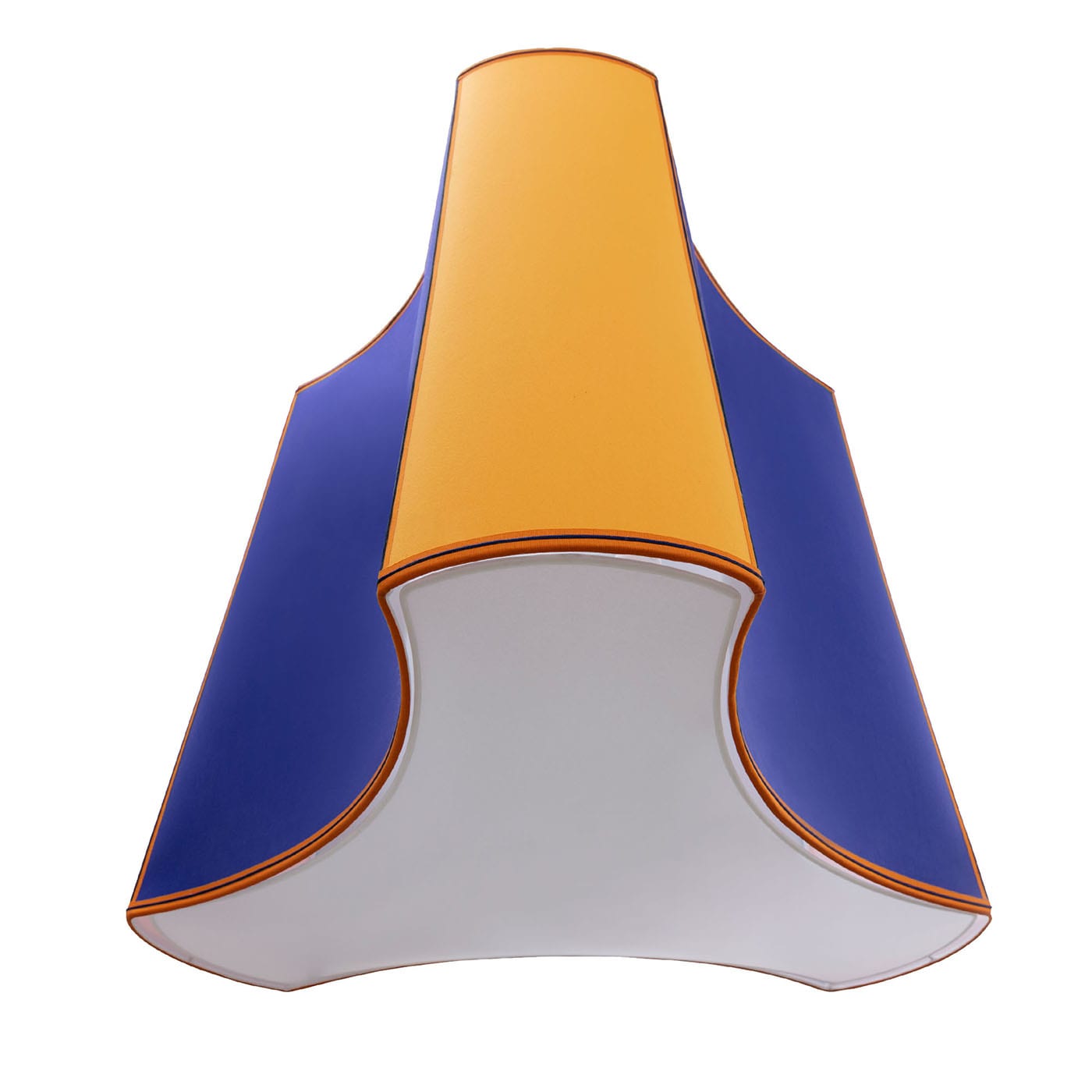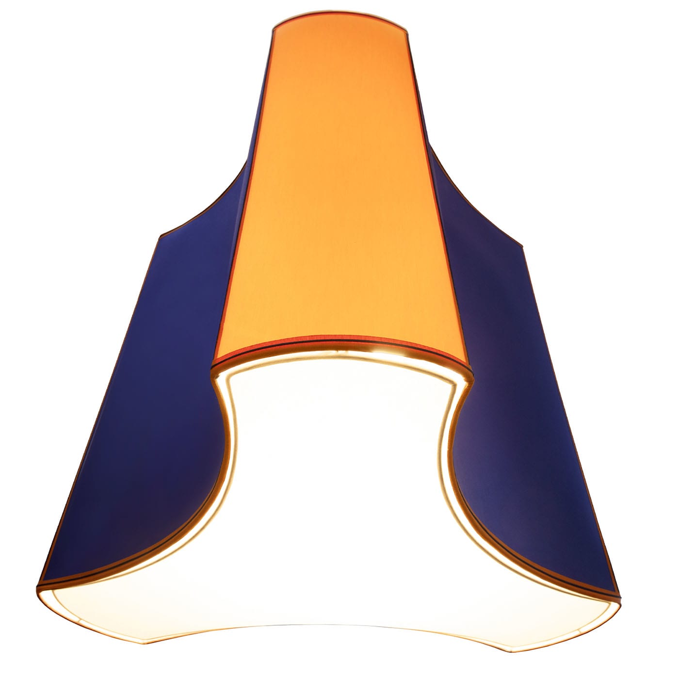 Подвесной светильник Fez, вдохновлённый тарбушем, традиционной красной шляпой без полей, своими оттенками синего и мандаринового цвета, напоминающими мажорель, напоминает яркие краски садов Марракеша. Абажур выполнен из хлопка с контрастной отделкой и дополнен белой железной потолочной розеткой. Для светильника требуется одна лампочка E27 или E26 (не входит в комплект) и 3-метровый гибкий шнур из чёрной ткани, имитирующей шёлк. Светильник совместим с системами диммирования.
