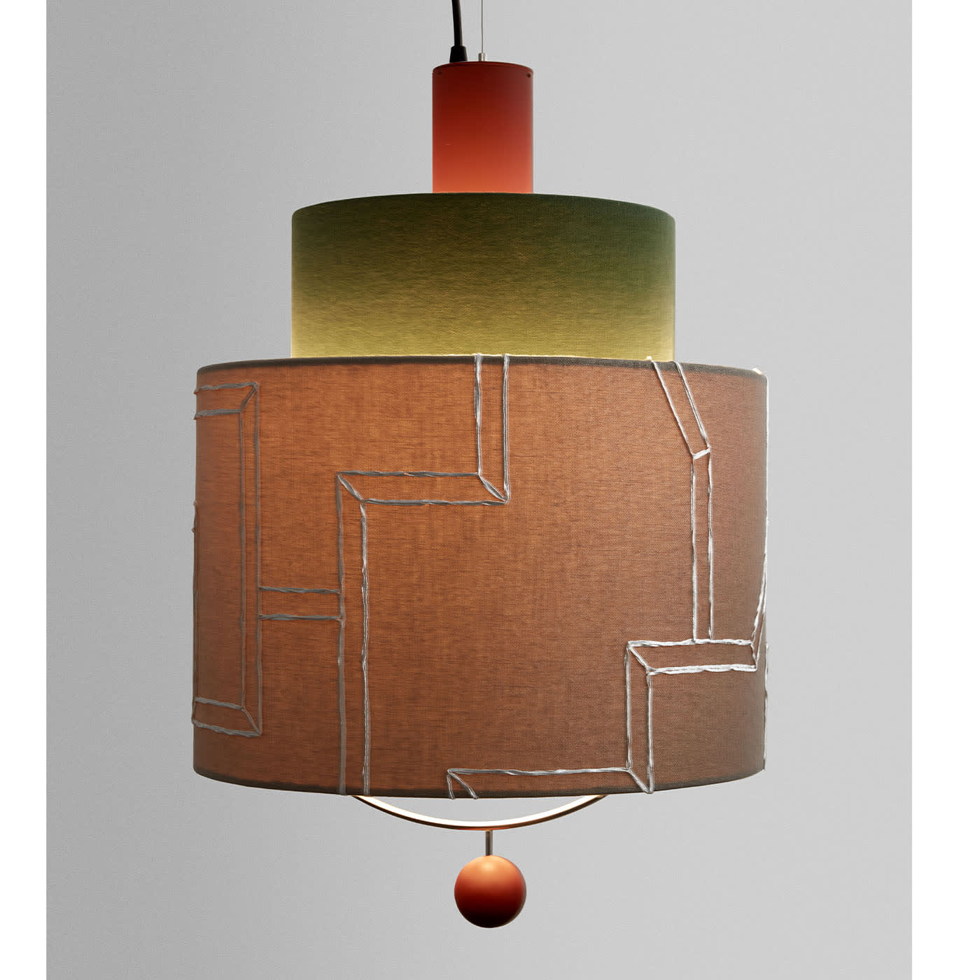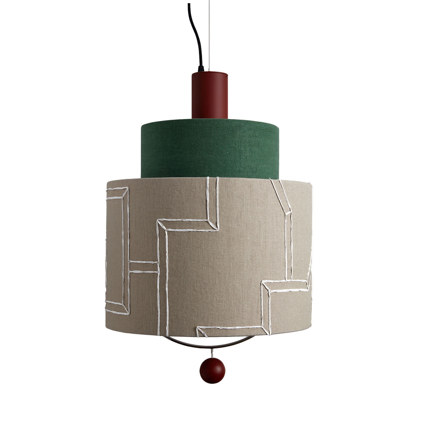 Светильники Materia сочетают в себе простоту и ретро-геометрические мотивы. Они изготовлены из чистого европейского длинноволокнистого льна от Dedar и украшены хлопковой лентой с 3D-покрытием. По запросу доступны одинарные, двойные или тройные варианты, а также система шкивов для регулировки высоты. Благодаря матовой стали и лакированным деревянным элементам, светильник отличается прочностью и универсальностью, неподвластной времени. Каждый светильник оснащен одной лампочкой E27 или E26 (не входит в комплект) и 3-метровым гибким шёлковым кабелем. Совместим с системами диммирования.