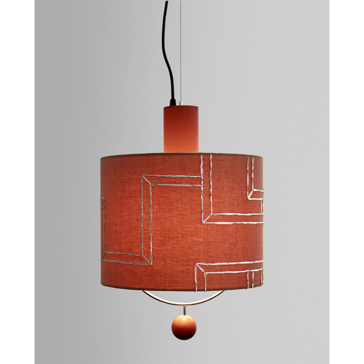 Светильники Materia сочетают в себе простоту и ретро-геометрические мотивы. Они изготовлены из чистого европейского длинноволокнистого льна от Dedar и украшены хлопковой лентой с 3D-покрытием. По запросу доступны одинарные, двойные или тройные варианты, а также система шкивов для регулировки высоты. Благодаря матовой стали и лакированным деревянным элементам, светильник отличается прочностью и универсальностью, неподвластной времени. Каждый светильник оснащен одной лампочкой E27 или E26 (не входит в комплект) и 3-метровым гибким шёлковым кабелем. Совместим с системами диммирования.