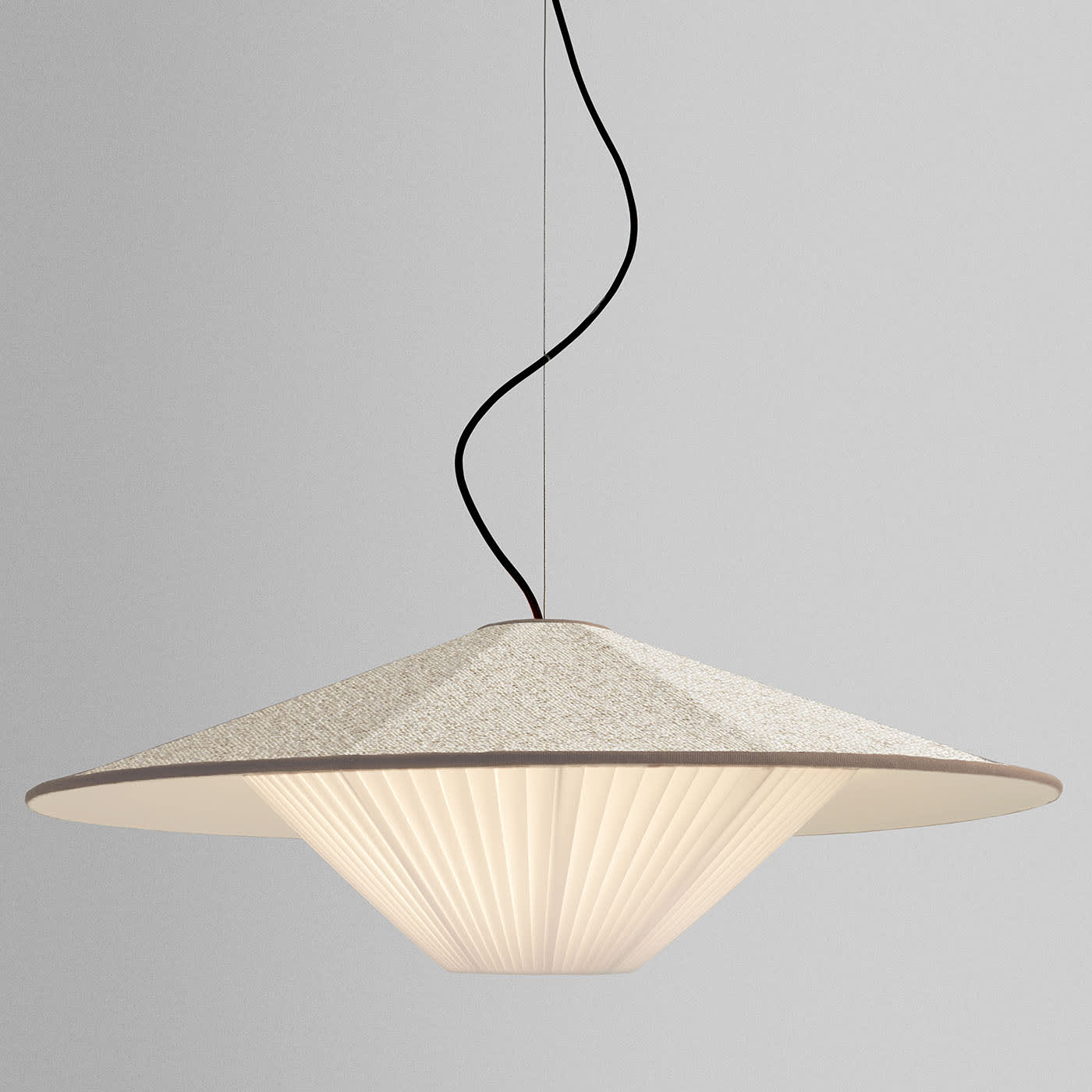 Дизайн серии ламп Otto перекликается с далёкой научно-фантастической фантазией конца 60-х – начала 70-х годов. Он вдохновлён иллюстрациями эпохи НЛО, которые напоминали о самых далёких вселенных. Лампы полностью сшиты вручную. Верхний абажур выполнен из ткани Dedar, а нижний – из плиссированного абажура из гофрированного материала Pongé. Для лампы требуется одна лампочка E27 или E26 (не входит в комплект). Светильник оснащен чёрным шёлковым гибким кабелем длиной 3 метра. Совместим с системами диммирования.