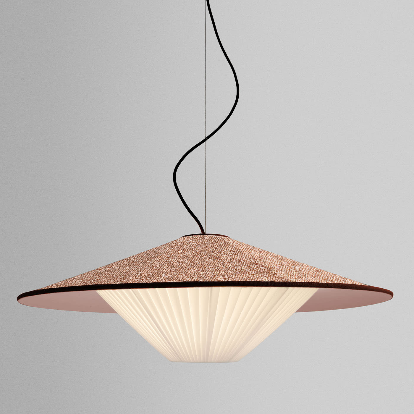 Дизайн серии ламп Otto перекликается с далёкой научно-фантастической фантазией конца 60-х – начала 70-х годов. Он вдохновлён иллюстрациями эпохи НЛО, которые напоминали о самых далёких вселенных. Лампы полностью сшиты вручную. Верхний абажур выполнен из ткани Dedar, а нижний – из плиссированного абажура из гофрированного материала Pongé. Для лампы требуется одна лампочка E27 или E26 (не входит в комплект). Светильник оснащен чёрным шёлковым гибким кабелем длиной 3 метра. Совместим с системами диммирования.