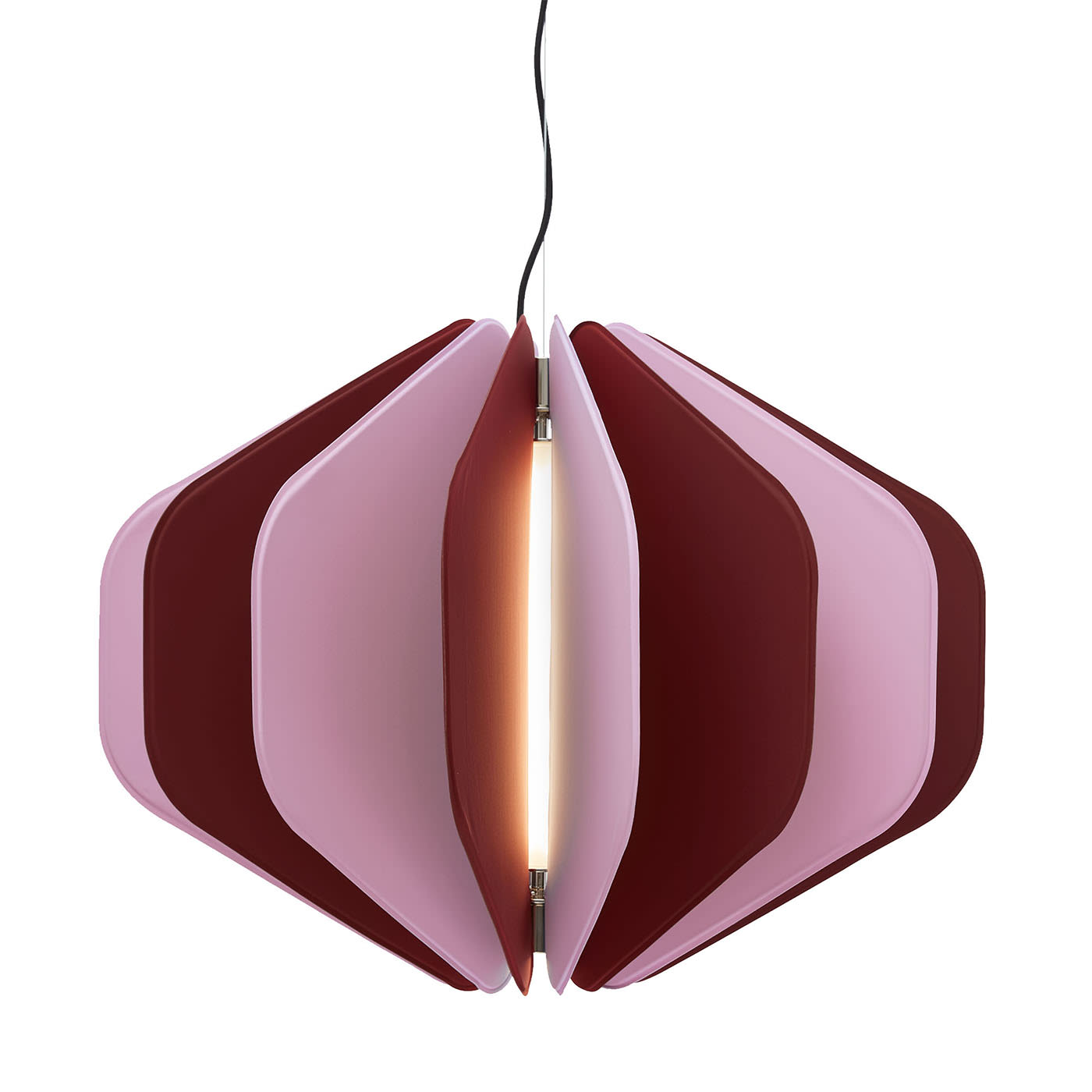 Подвесные светильники вдохновлены изгибами женского тела и представляют собой тонкий металлический скелет, обтянутый мягкой эластичной лайкрой. Этот дизайн имитирует сменные наряды, создавая игривый эффект. Абажур изготовлен из термосварной лайкры, а каркас – из хромированного железа и алюминия. Каждый светильник комплектуется светодиодной лентой мощностью 29 Вт или светодиодной платой мощностью 9 Вт (в комплекте). Светильник оснащен 3-метровым черным шёлковым кабелем. По запросу возможна установка системы диммирования.