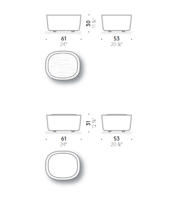 DePadova Ripamonti PoufRipamonti, разработанный Кейджи Такеучи для De Padova, представляет собой пуф, конструкция которого состоит из панелей березовой фанеры, полимекса, вспененного полиуретана и полиэфирной ваты, покрытой полиэстеровым вельветом. Он доступен в двух моделях с подушкой сиденья или верхом. Доступен с различной тканью, кожей или верхом.