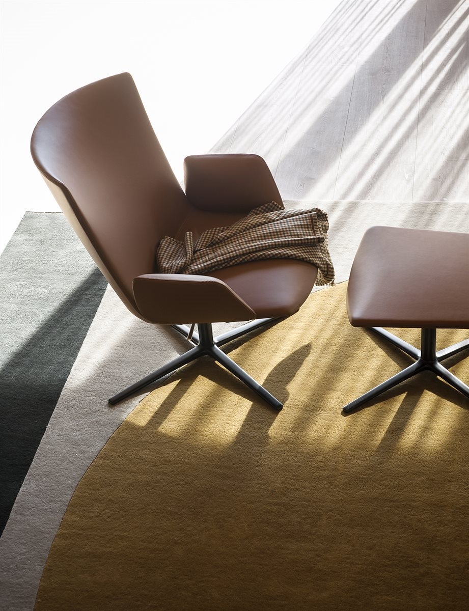 Calum Lounge Pouf Подставка для ног DesaltoCalum Lounge Pouf, разработанная Саймоном Пенгелли для Desalto, представляет собой табурет для ног с сиденьем, отлитым из жесткого полиуретана и набивкой из пенопласта. Поворотное основание с 4 спицами из алюминия.
