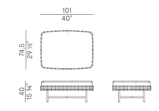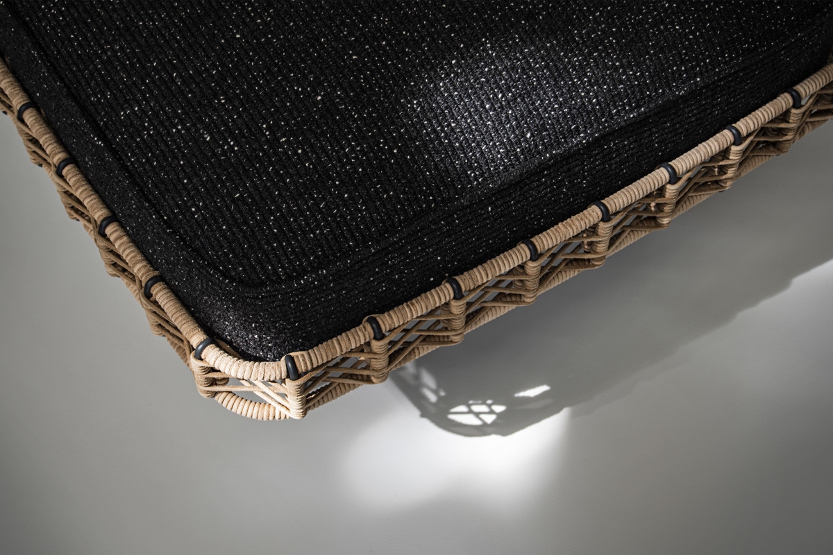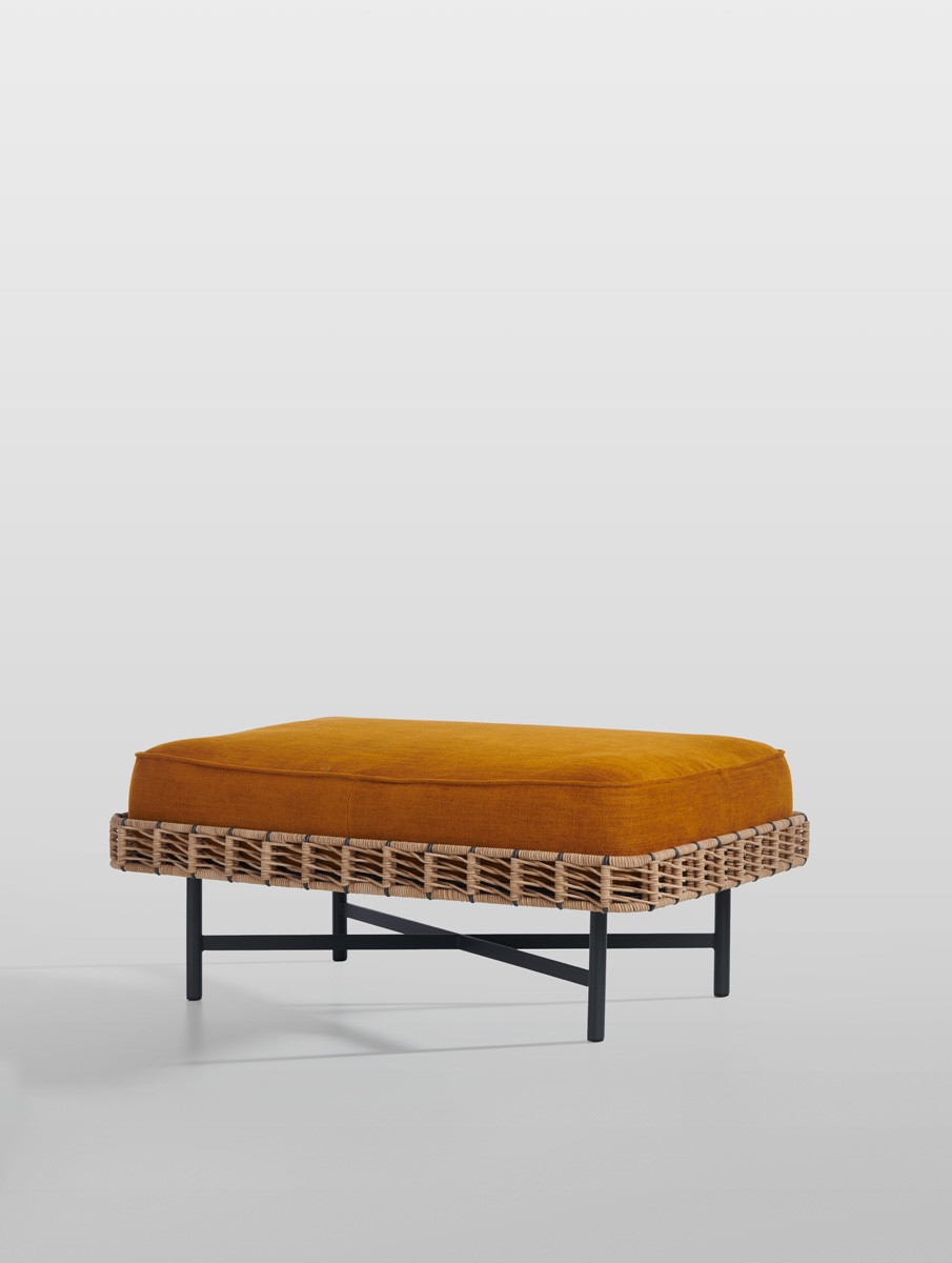 Ropu Potocco PoufRopu, разработанный Кьярой Андреатти для Potocco, представляет собой прямоугольный пуф с тисненой металлической структурой, окрашенной в антрацитовый цвет, и каркасом с плетением кожаного шнура или темно-коричневого шнура «Гасса». Съемная подушка с подушкой из огнеупорного пенополиуретана с обивкой из кожи, эко-кожи или ткани.