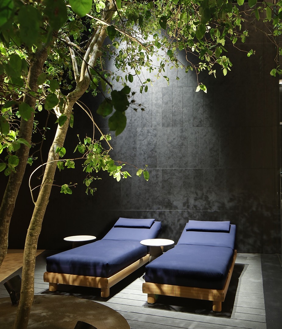 Ketch Poliform SunbedKetch, разработанный Жаном Мари Массо для Poliform, представляет собой шезлонг со структурой из твердого натурального ироко или ироко, окрашенного в черный цвет. Подушка сиденья и спинки из пенополиуретана различной плотности, подушка подголовника из пенополиуретана, предварительное покрытие из смолы в сочетании с водоотталкивающей тканью. Съемный тканевый чехол. Металлические детали из алюминия и нержавеющей стали, окрашенные в матово-коричневый никель. Отделение под спинкой оборудовано держателем для предметов, покрытым техническим материалом.
