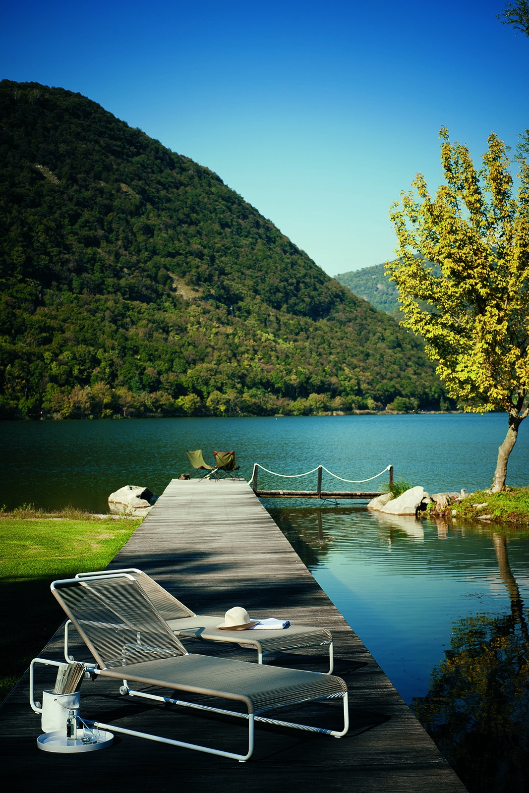 Harp 304 — это уличный солярий, разработанный Родольфо Дордони для компании Roda. Классическое веревочное сиденье обретает новое измерение дизайна в этой версии для улицы, где полиэстер растягивает бесконечные нити, которые обернуты трубками из нержавеющей стали: которые непрерывно рисуют линию.