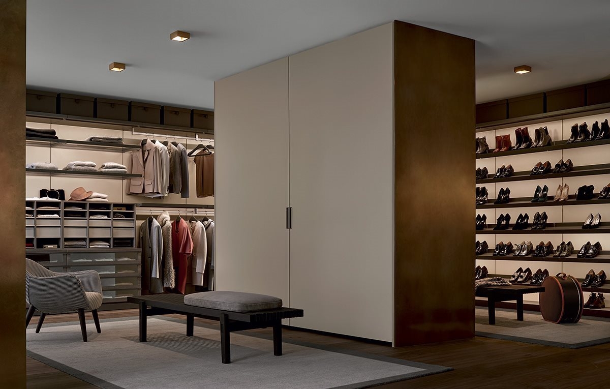 Skin Poliform WardrobeSkin, разработанный R&D Poliform, представляет собой гардероб с меламиновыми дверями и алюминиевыми профилями. Универсальность состава делает его подходящим для любой среды. Свяжитесь с нашей службой поддержки клиентов, чтобы спроектировать свое устройство.