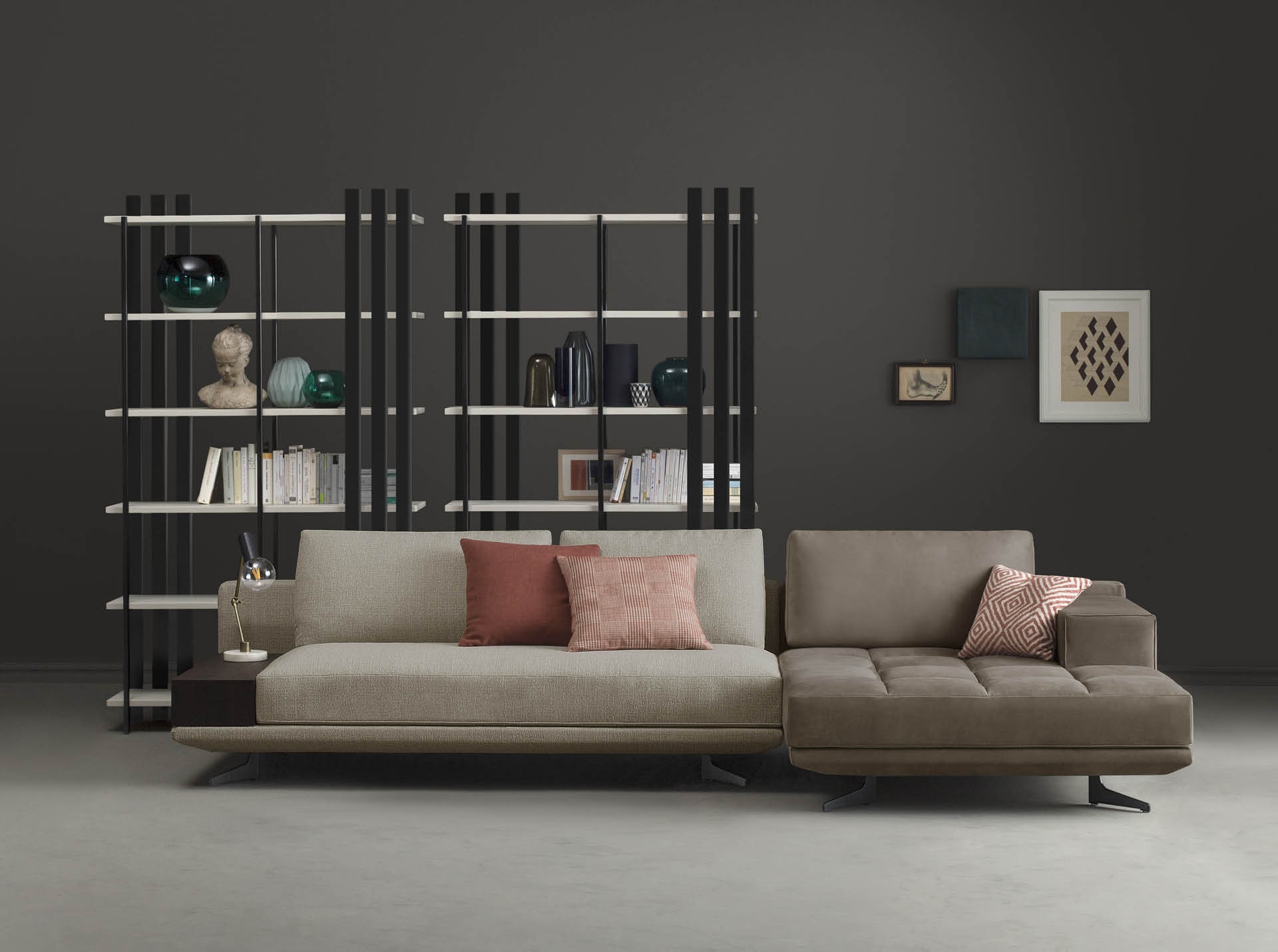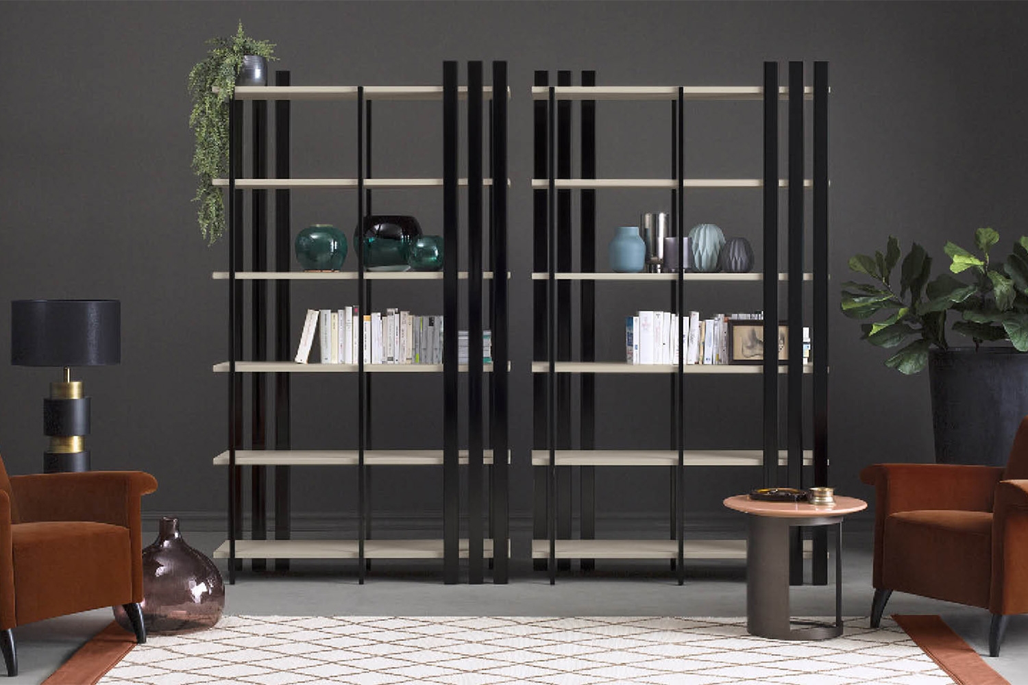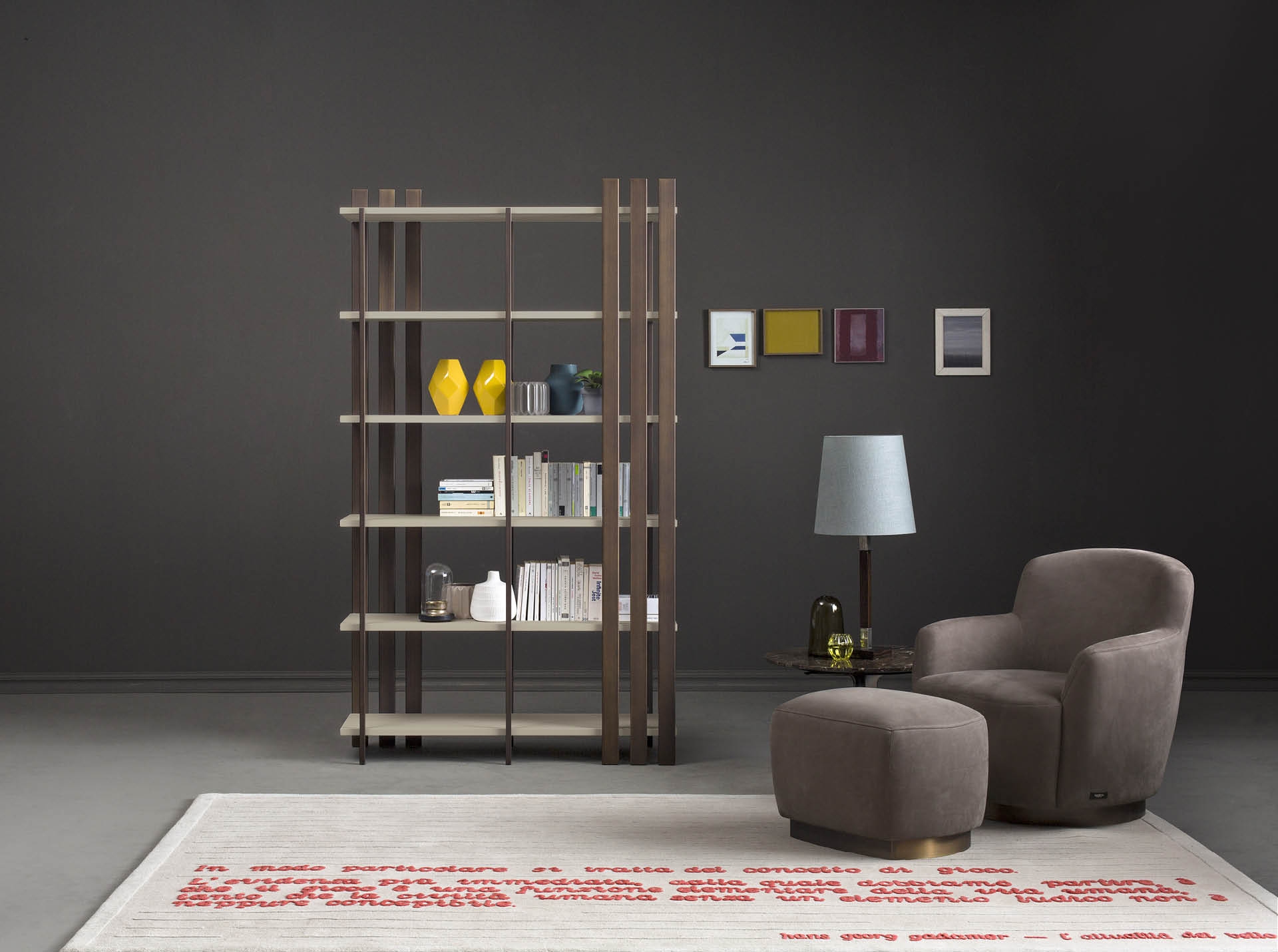 Книжный шкаф Tower Bodema Tower, разработанный Джузеппе Манцони для Bodema, представляет собой книжный шкаф с металлической несущей конструкцией, доступный в отделке матовой бронзы или матового марганцевого лака. Полки доступны в тисненом матовом лаке, глянцевом лаке или в отделке орех каналетто.