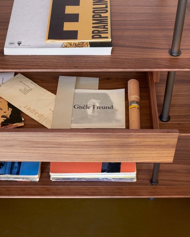 Книжный шкаф Arial PotoccoArial, разработанный Габриэле и Оскаром Буратти для Potocco, представляет собой самонесущий книжный шкаф с металлической конструкцией и полками из ясеня или ореха Каналетто. Доступны в различных вариантах отделки и размерах. Дополнительный ящик.
