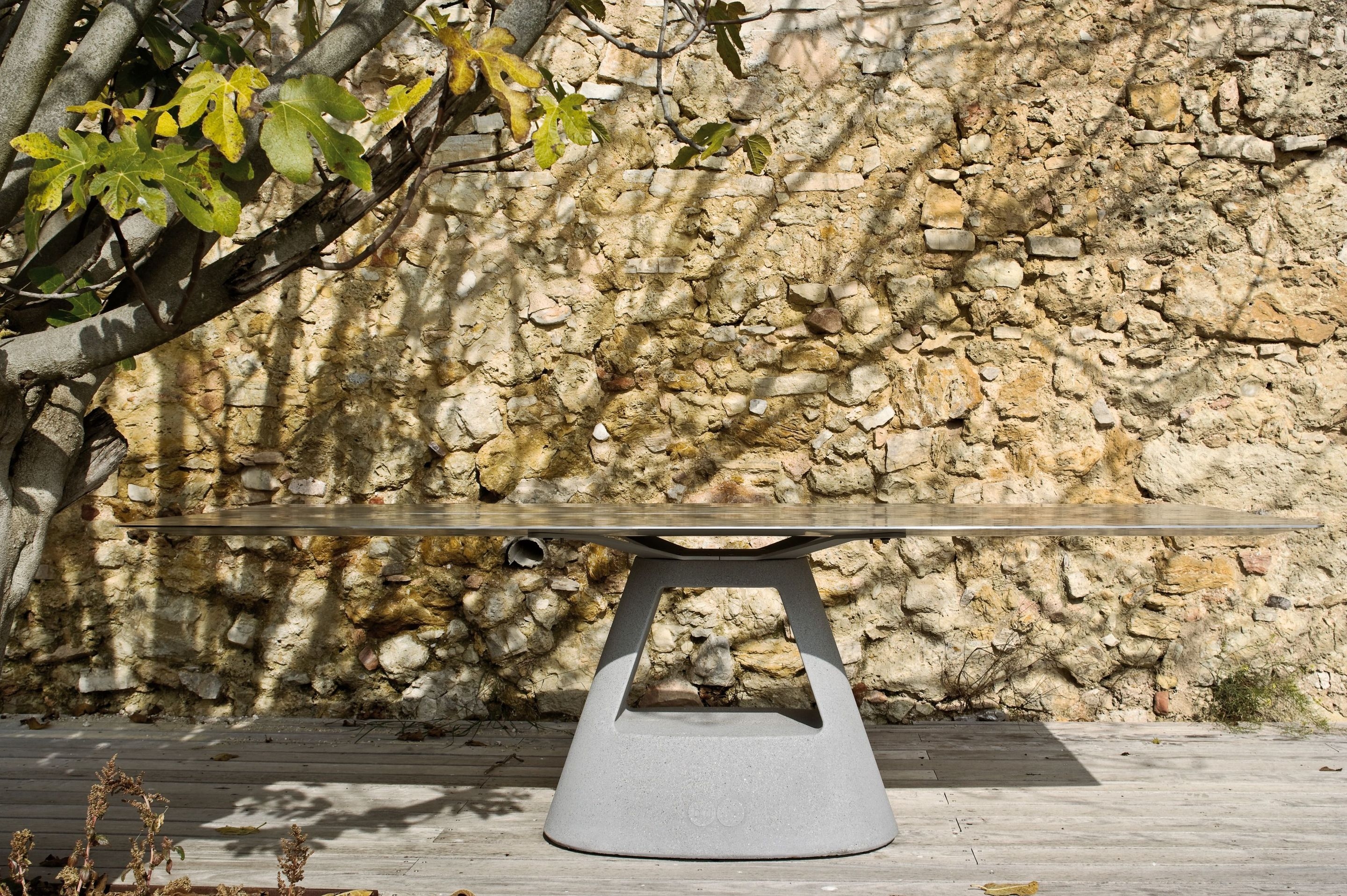Стол B 120 BD Barcelona CementoСтол B 120 из цемента, разработанный Константином Грчичем для BD Barcelona, представляет собой стол со столешницей из экструдированного алюминия и открытыми концами, обрезанными под углом 45°. Возможность ламинирования поверхности под натуральный дуб с окраской. Серый бетонный фундамент. Доступны в разных размерах.