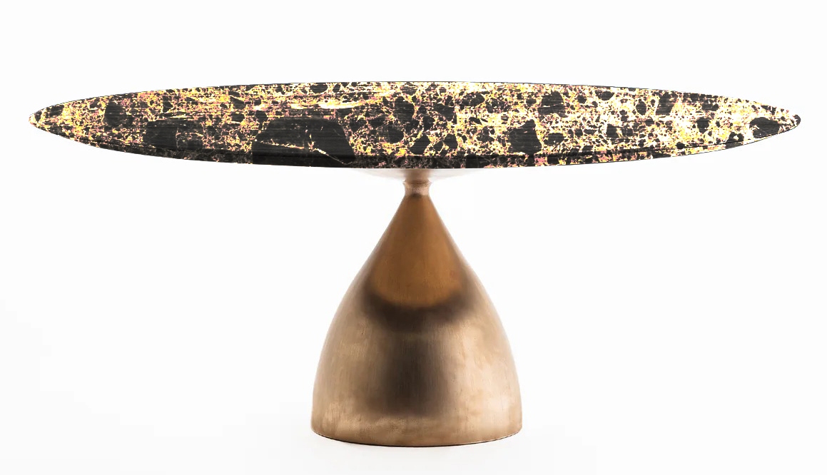Стол Raindrop Casting Bronze Marble DePadova. Raindrop Casting Bronze Marble, разработанный Time & Style ēdition для DePadova, представляет собой круглый стол с отполированным вручную основанием из литой бронзы темно-бронзового или светло-бронзового цвета. Столешница выполнена из мрамора, доступна в различных матовых вариантах отделки или с водоотталкивающей обработкой.