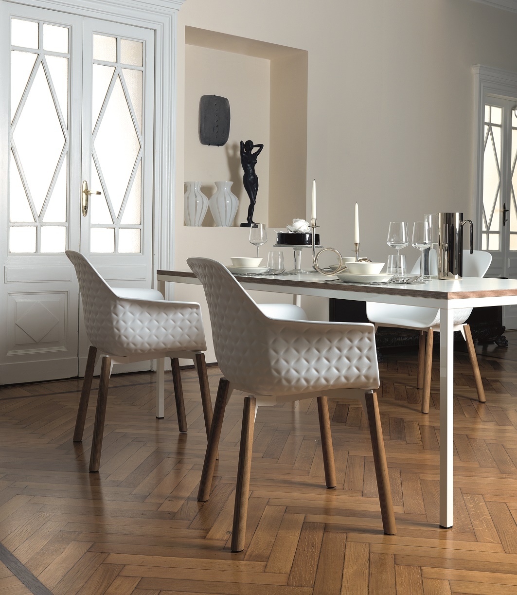 Quadrato DePadova Стол Quadrato, разработанный и произведенный DePadova, представляет собой стол со стальным основанием с белым порошковым покрытием и столешницей из ДСП с краем из морской фанеры, покрытым белым ламинатом HPL. Доступны в разных размерах.