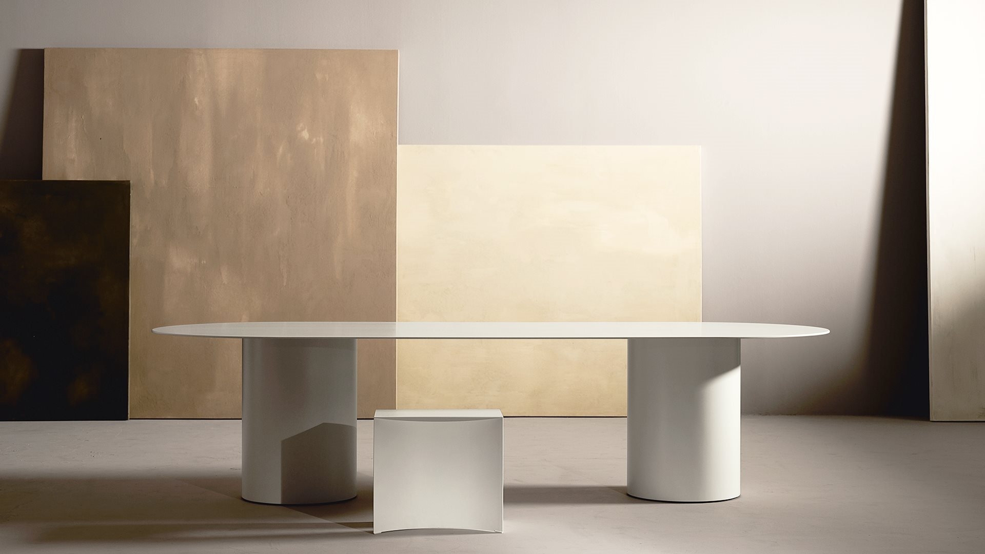 Стол MM8 Desalto MM8, разработанный Гульельмо Полетти для Desalto, представляет собой лакированный стол с толстой алюминиевой столешницей. 8 мм и двойное цилиндрическое основание, покрытое алюминиевым листом. Доступен в 2 размерах.