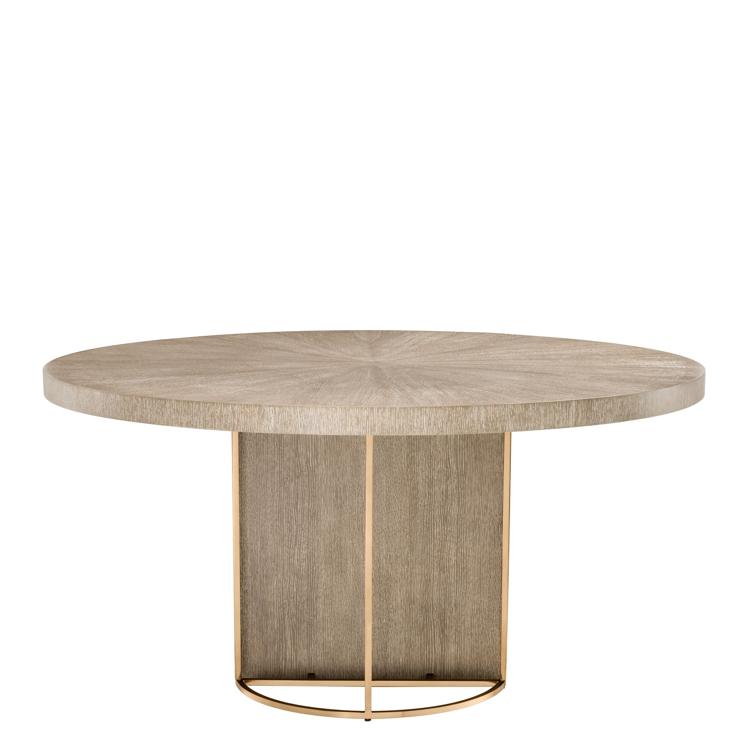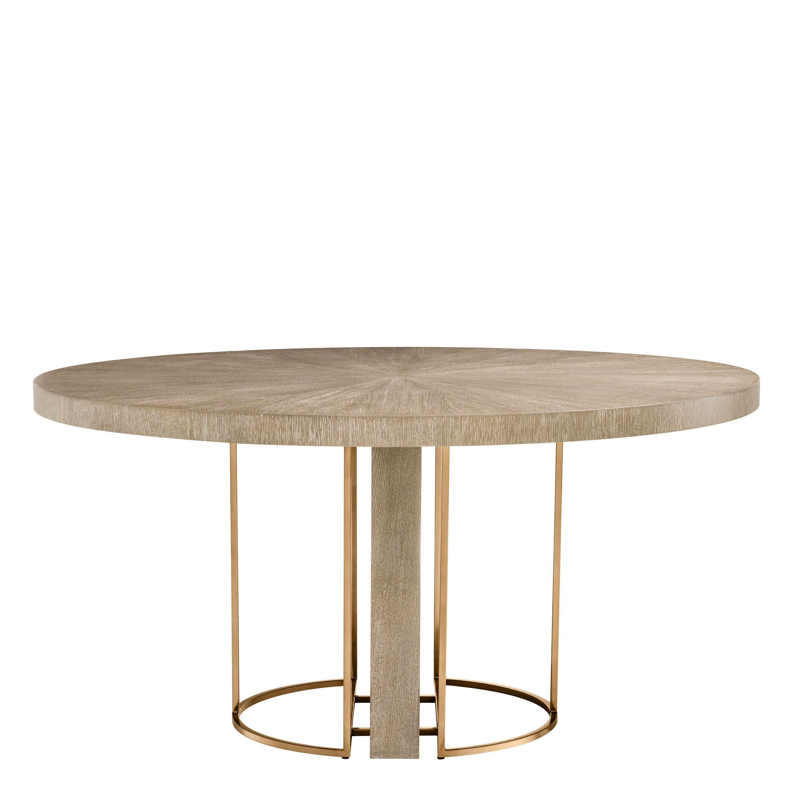 Круглый стол Remington EichholtzRemington, разработанный Eichholtz, представляет собой круглый стол, состоящий из столешницы, шпонированной мытым дубом, и основания с отделкой из матовой латуни.