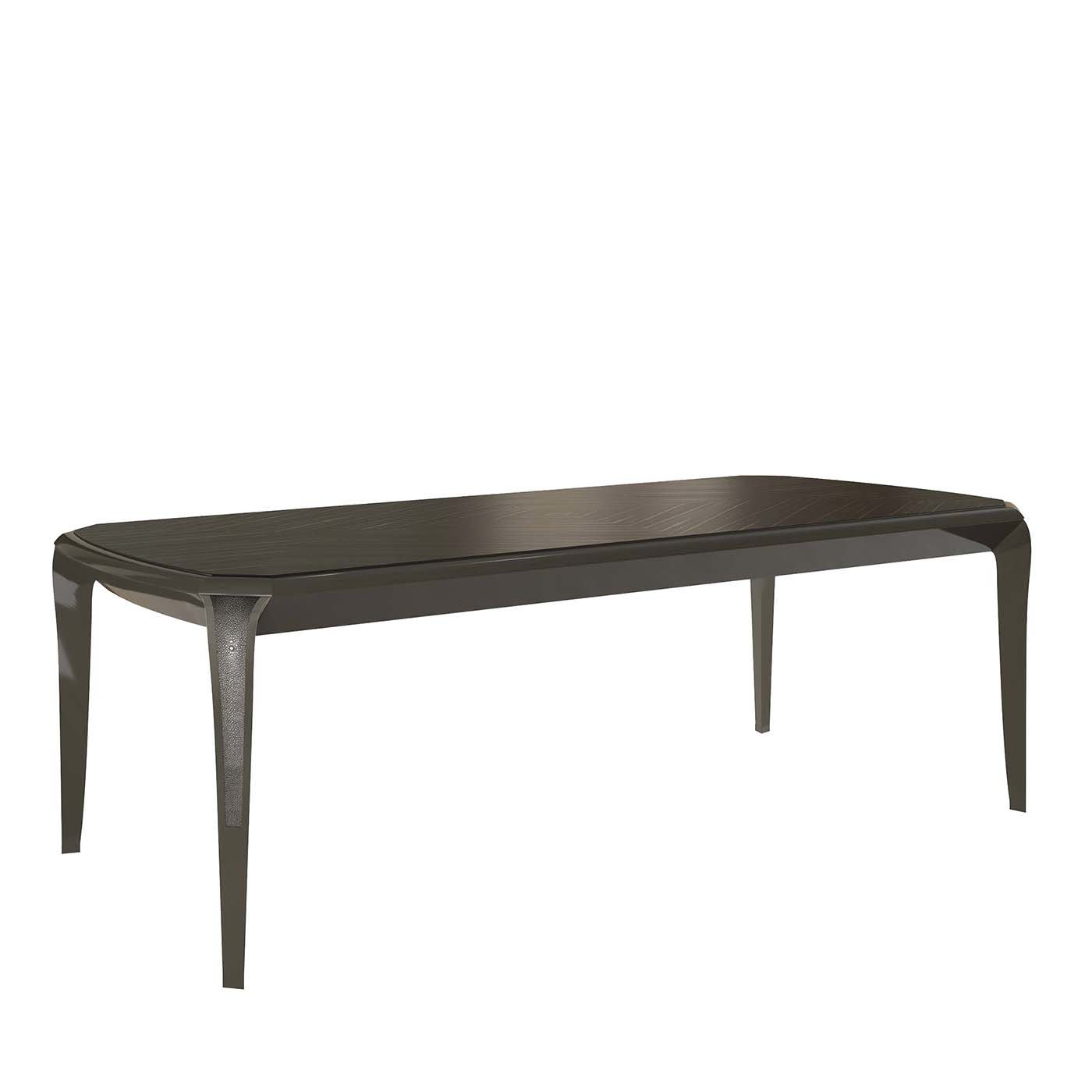Этот эффектный стол станет прекрасным дополнением к любому интерьеру и станет воплощением визуального баланса. Привлекательное сочетание отделок – глянцевого лакированного дерева и матовой текстурированной кожи – придаёт изысканность и визуальный интерес элегантному и простому силуэту, поддерживаемому элегантно изогнутыми ножками. Прямоугольная столешница имеет скошенный край и квадратные углы, а поверхность стола дополнена чёрной кожаной вставкой, которая сочетается с вставкой в верхнем углу ножек. Этот очаровательный стол, идеально подходящий для современной столовой, будет излучать строгую элегантность и уникальный стиль.