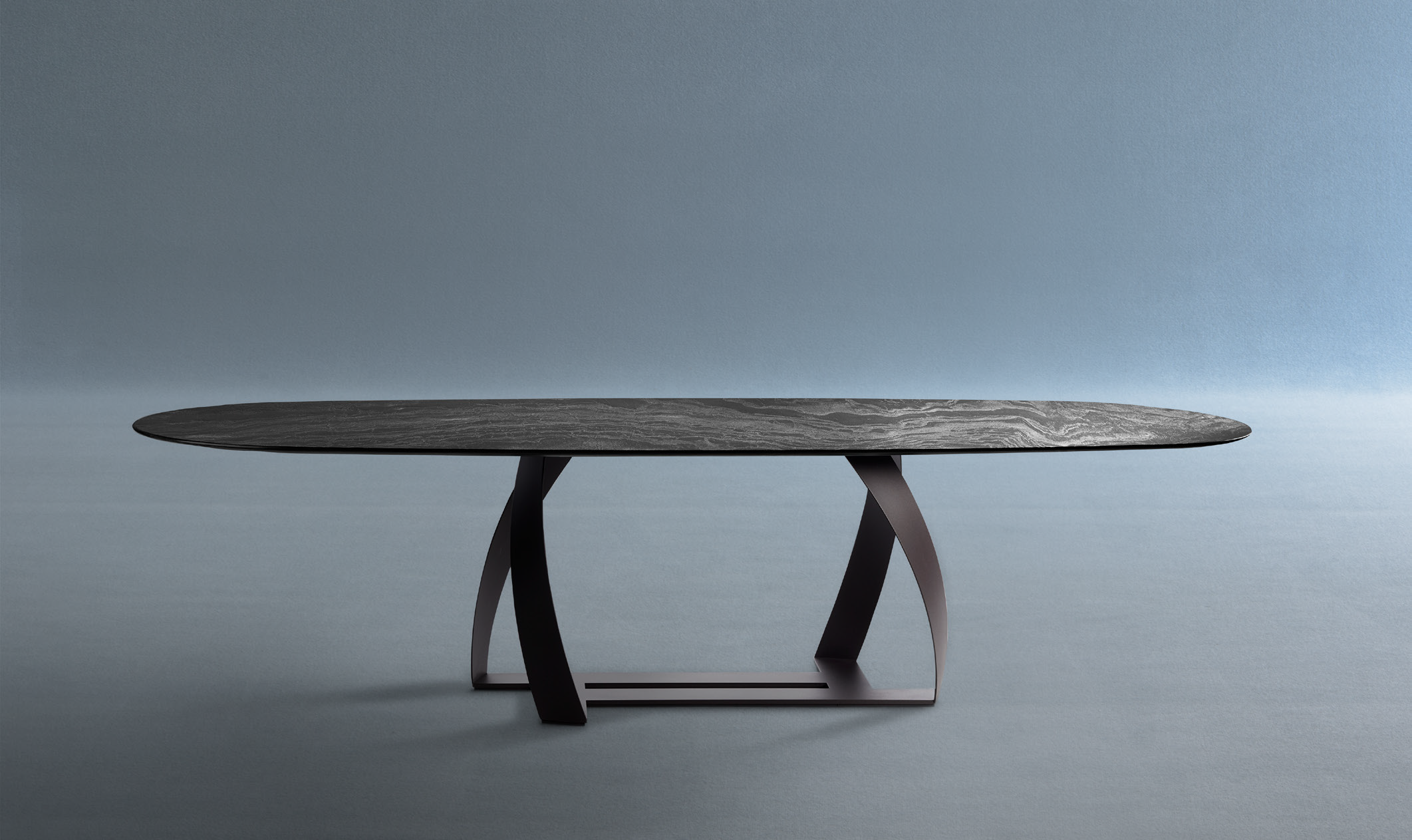 Стол Bon Bon PotoccoBon Bon, разработанный Александром Лоренцем для Potocco, представляет собой стол с металлической основой, окрашенной в различные цвета. Столешница имеет овальную форму и доступна из ореха каналетто, стекла или мрамора с различной отделкой и размерами.