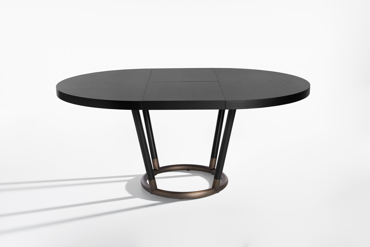Pipe Potocco TablePipe, разработанный Favaretto & Partners для Potocco, представляет собой круглый раздвижной стол, полностью выполненный из массива ясеня с различной отделкой. Трубчатое основание из полированной латуни.