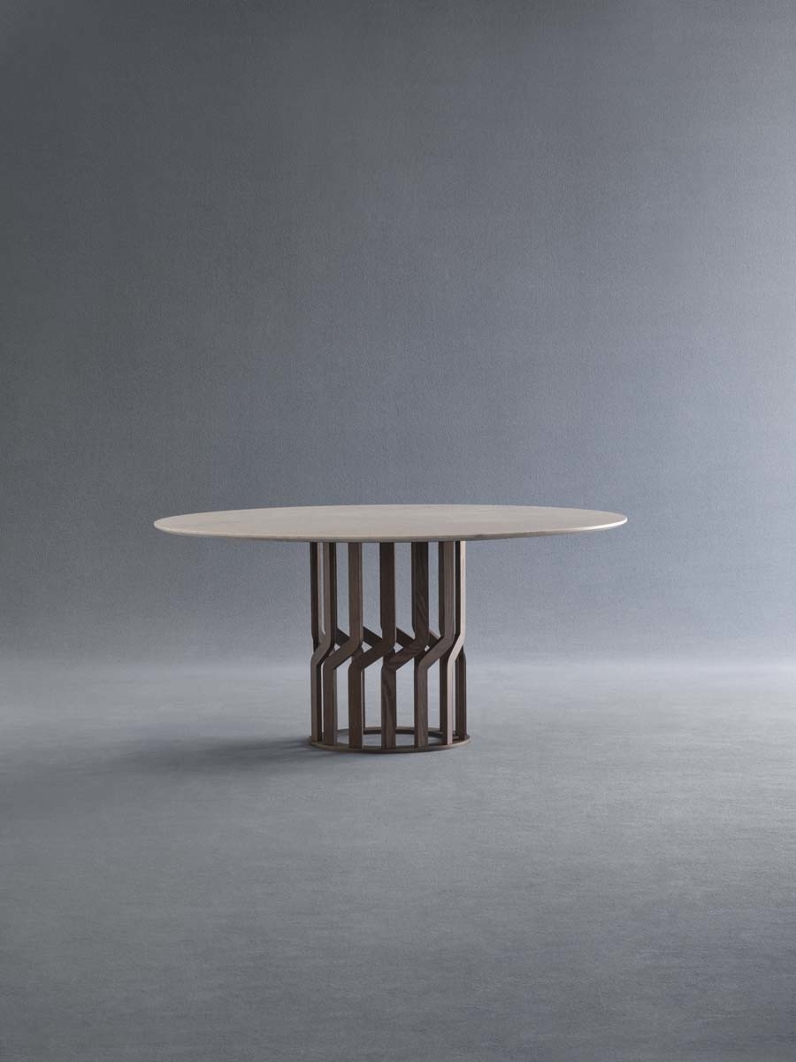 Стол Intreccio PotoccoIntreccio, разработанный Nava + Arosio для Potocco, представляет собой стол с круглым основанием, выполненным из сочетания массива ясеня и мрамора разных цветов. Столешница имеет круглую форму и доступна в различных вариантах мраморной отделки.