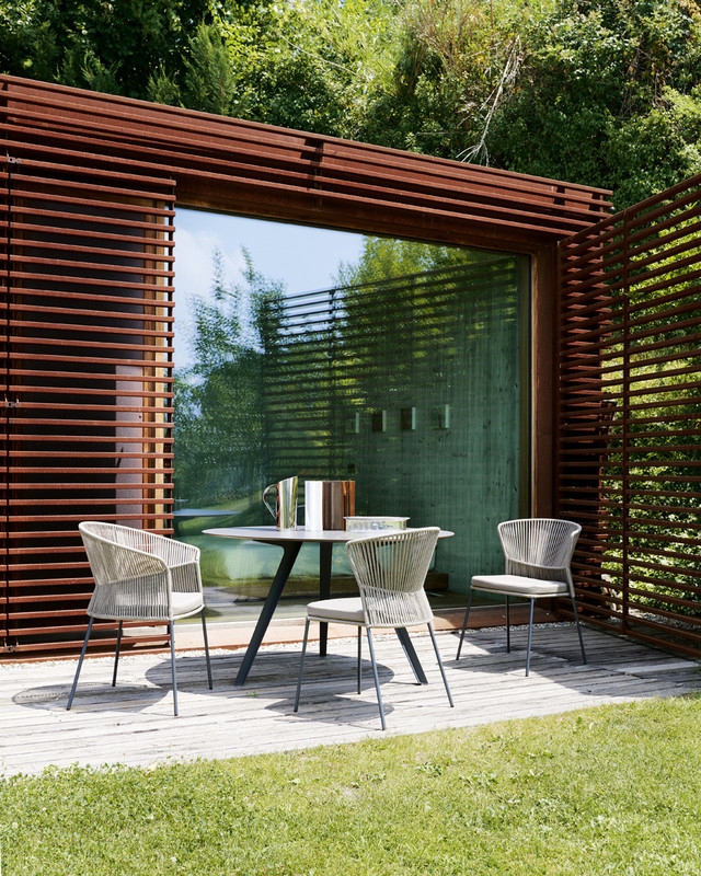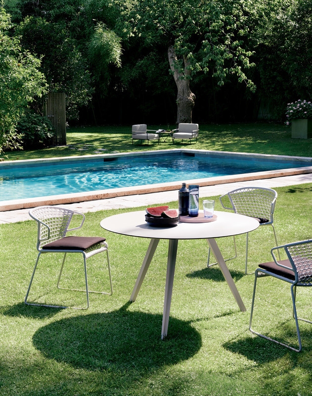 Стол Katana Outdoor PotoccoKatana Outdoor, разработанный Мауро Липпарини для Potocco, представляет собой уличный стол круглой или четырехугольной формы с окрашенным металлическим основанием и столешницей из HPL или керамогранита. Доступны в разных размерах.