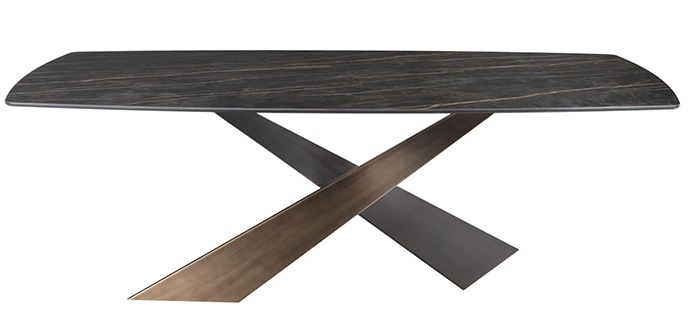Living Ceramica Riflessi TavoloLiving, разработанный Riflessi, представляет собой стол с окрашенным металлическим основанием и керамической столешницей. Доступны в различных вариантах отделки и размерах.