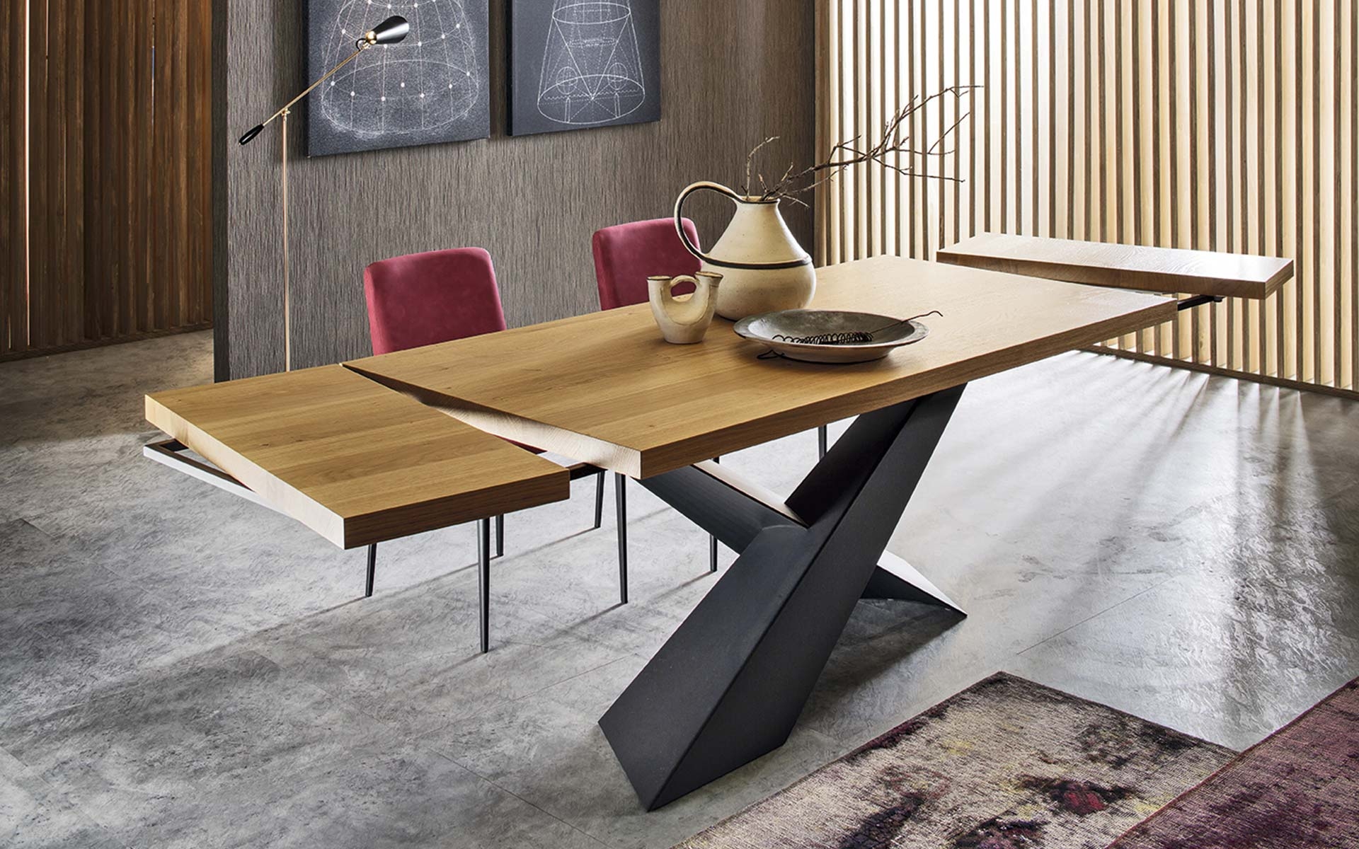 Living Legno SP 50 Riflessi TableLiving, разработанный Riflessi, представляет собой стол с деревянной столешницей толщиной 50 мм. с неровными краями из ореха каналетто или дуба. Основание из окрашенного алюминия. Доступны в различных вариантах отделки и размерах.