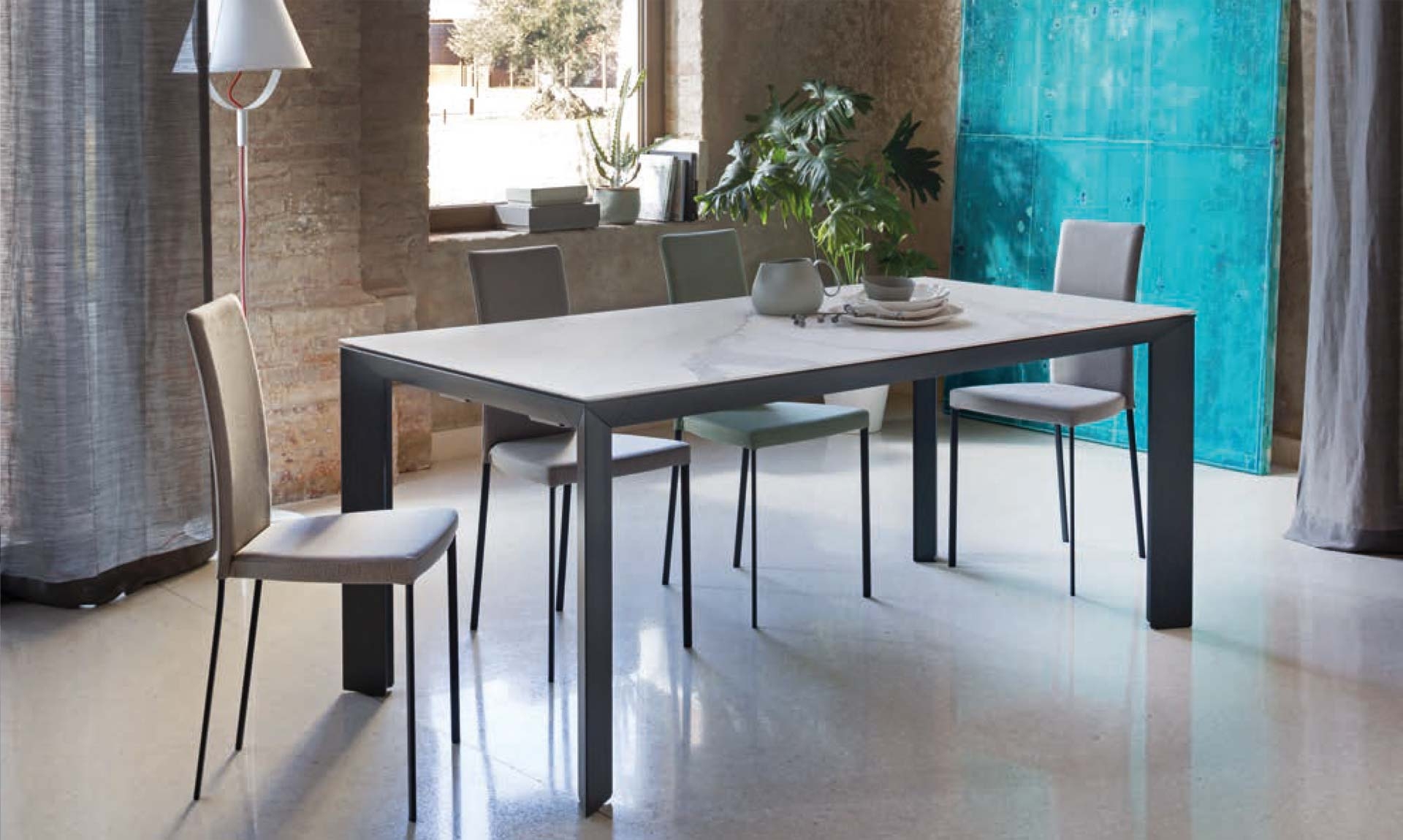 Manhattan Riflessi TableManhattan, разработанный Riflessi, представляет собой фиксированный стол, конструкция и ножки которого выполнены из лакированного или окрашенного алюминия, столешница из сверхпрозрачного матового закаленного стекла или керамики, окрашенного с обратной стороны. Доступны в различных вариантах отделки и размерах.