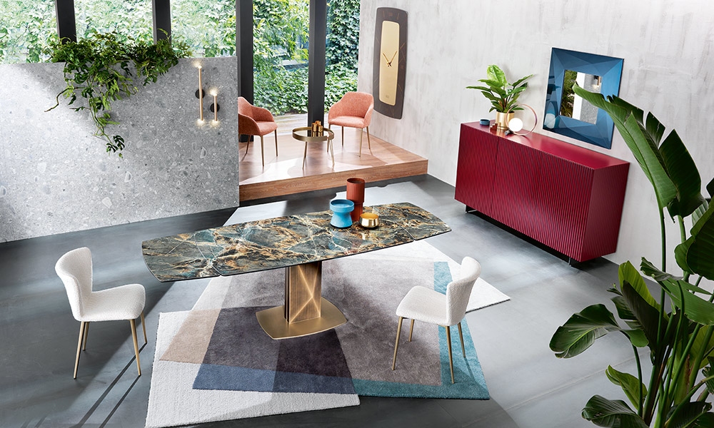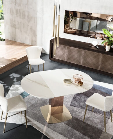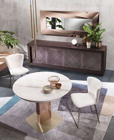 Стол Sabino Riflessi Sabino, разработанный Riflessi, представляет собой стол с основанием из окрашенного металла или покрытым зеркальной сталью и керамической столешницей. Доступны в разных размерах.