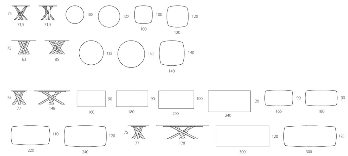 Shangai Ceramica Riflessi TavoloShangai, разработанный Riflessi, представляет собой стол со скошенной керамической столешницей, наслоенной на стекло. Алюминиевая основа, покрытая зеркальной, окрашенной или покрытой нержавеющей сталью. Доступны в разных размерах.