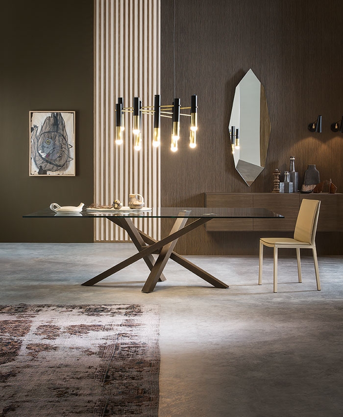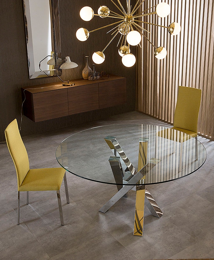 Стол Shangai Cristallo RiflessiШангай, разработанный Riflessi, представляет собой стол со столешницей из сверхпрозрачного закаленного прозрачного стекла. Алюминиевое основание, покрытое зеркальной нержавеющей сталью, окрашенное, покрытое песчаником Rivergrey или ArabiK, либо покрытое орехом Canaletto или дубом. Доступны в разных размерах.