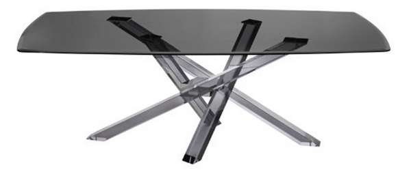 Стол Shangai Limited Edition RiflessiShanghai Limited Edition, разработанный Riflessi, представляет собой стол с прозрачным основанием из метакрилата с дымчатым эффектом, состоящим из наклонных и асимметрично перекрывающихся ножек с центральным шарниром из нержавеющей стали Reflect Black. Столешница выполнена из скошенного дымчатого прозрачного закаленного стекла.