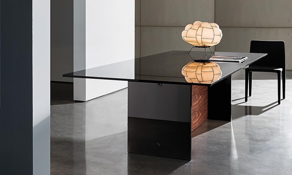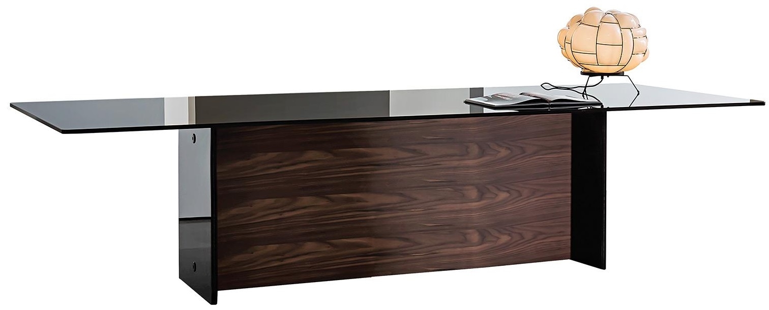 Стол Regolo Double Base SovetRegolo Double Base, разработанный Lievore, Altherr, Molina для Sovet, представляет собой стол со стеклянной столешницей, основанием, состоящим из деревянного элемента и двух элементов из черного лакированного многослойного стекла. Столешница и элемент из дерева с различной отделкой.