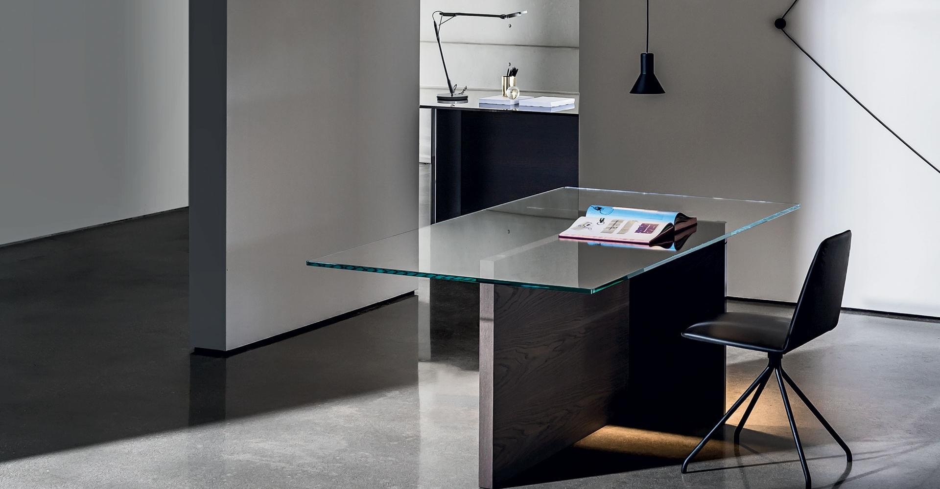 Стол Regolo SovetRegolo, разработанный Lievore, Altherr, Molina для Sovet, представляет собой стол со стеклянной столешницей, основанием, состоящим из деревянного элемента и элемента из черного лакированного многослойного стекла. Доступны в разных размерах. Столешница и элемент из дерева с различной отделкой.