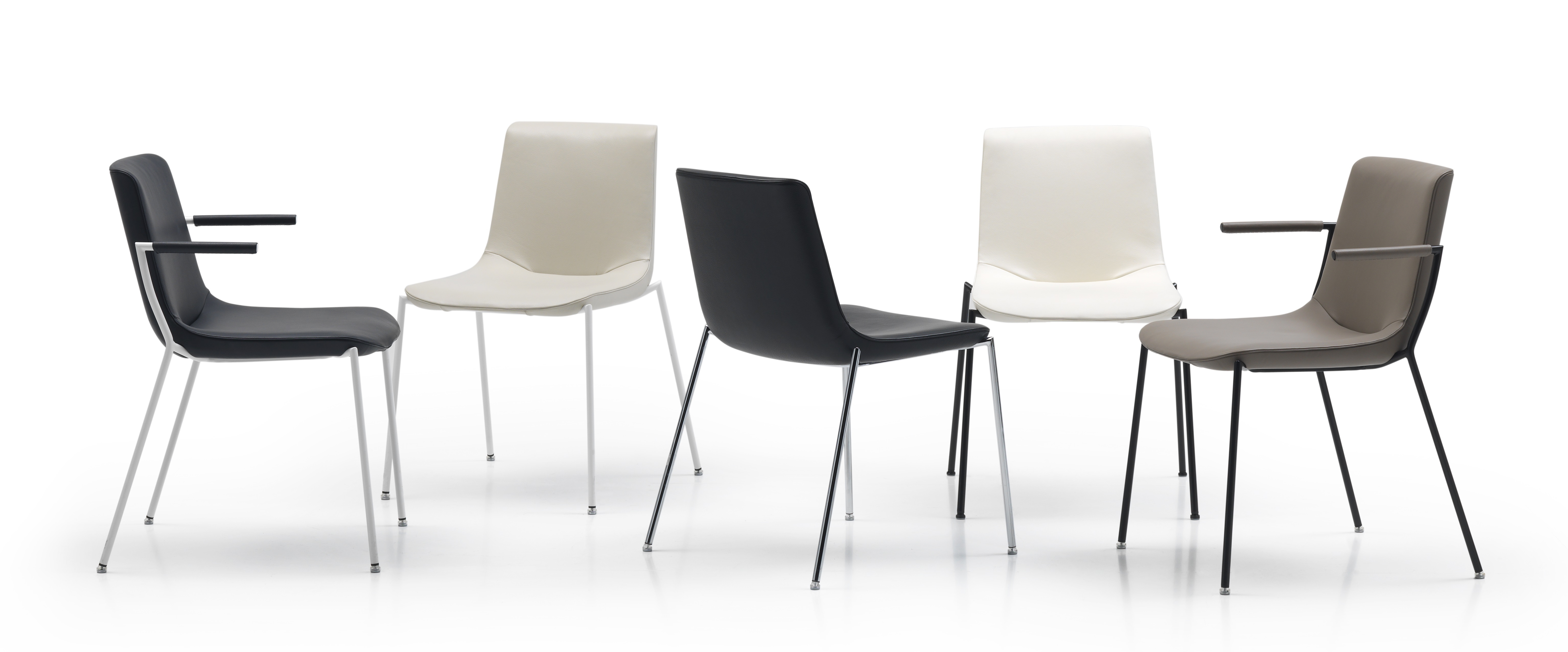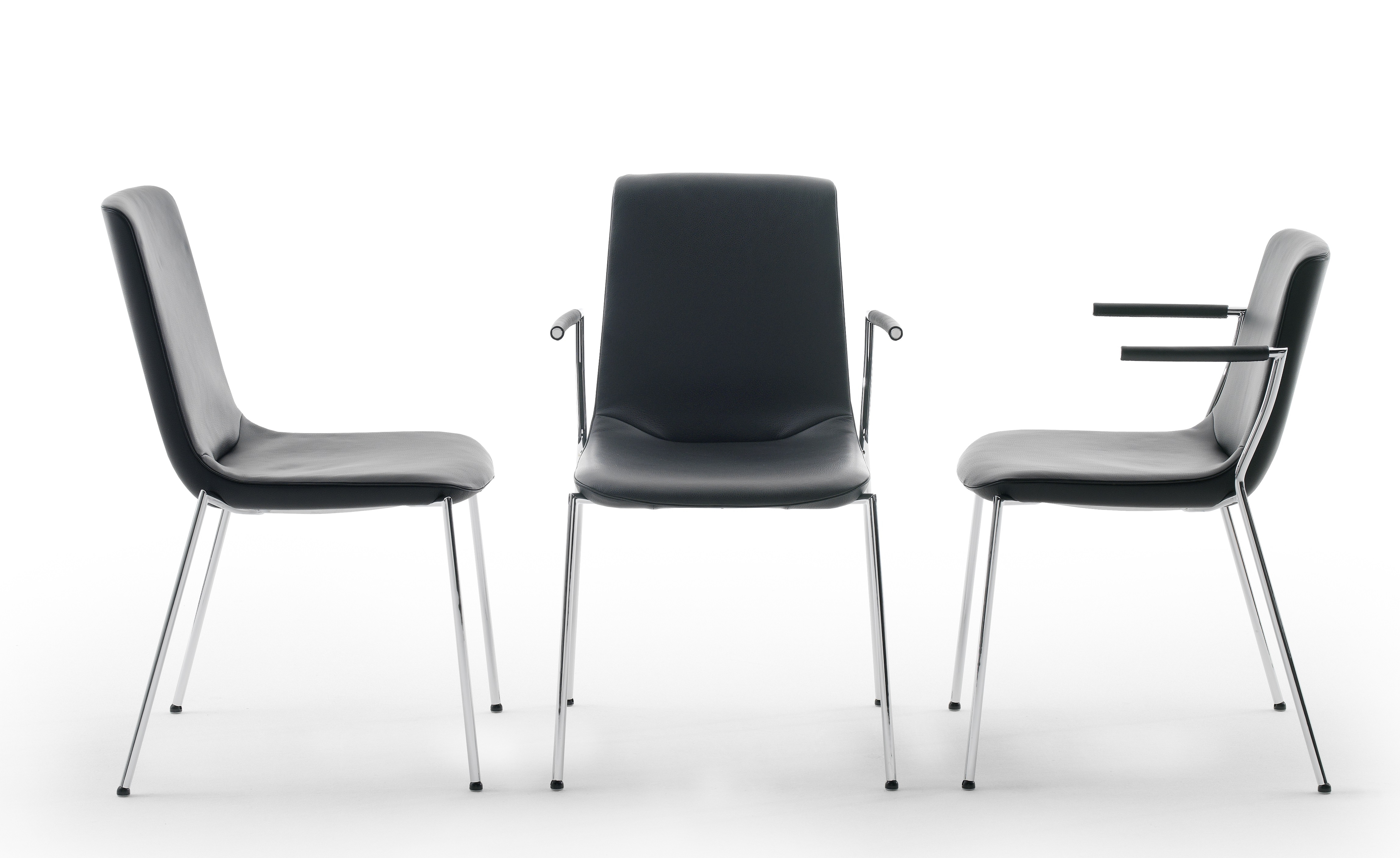 DS-717 Стул De Sede. DS-414, разработанный Клаудио Беллини для De Sede, представляет собой стул с блестящей хромированной структурой или обивкой цветов RAL и внутренней оболочкой из буковой фанеры с обивкой SEDEX из кожи или ткани и ватной подушкой. Доступны в различных размерах и отделках.