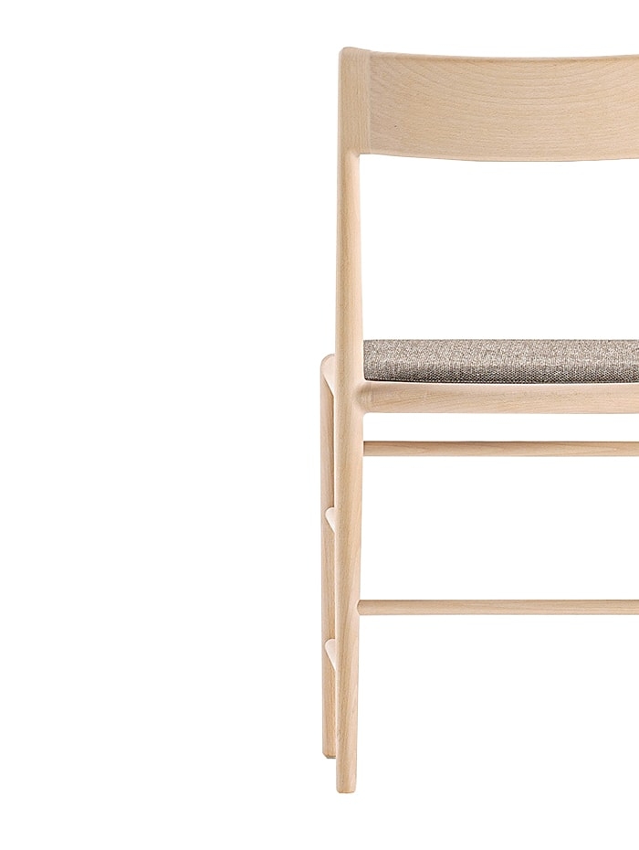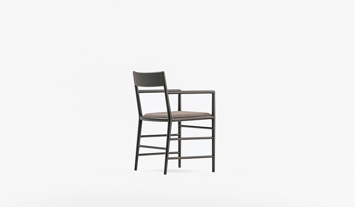 Стул с чувствительной спинкой DePadova Стул с чувствительной спинкой, разработанный Time & Style ēdition для DePadova, представляет собой стул со структурой из массива бука, окрашенного в снежный или угольно-серый цвет, и фиксированной обивкой из серой ткани или темно-коричневой кожи. Доступен в версии с подлокотниками или без них.