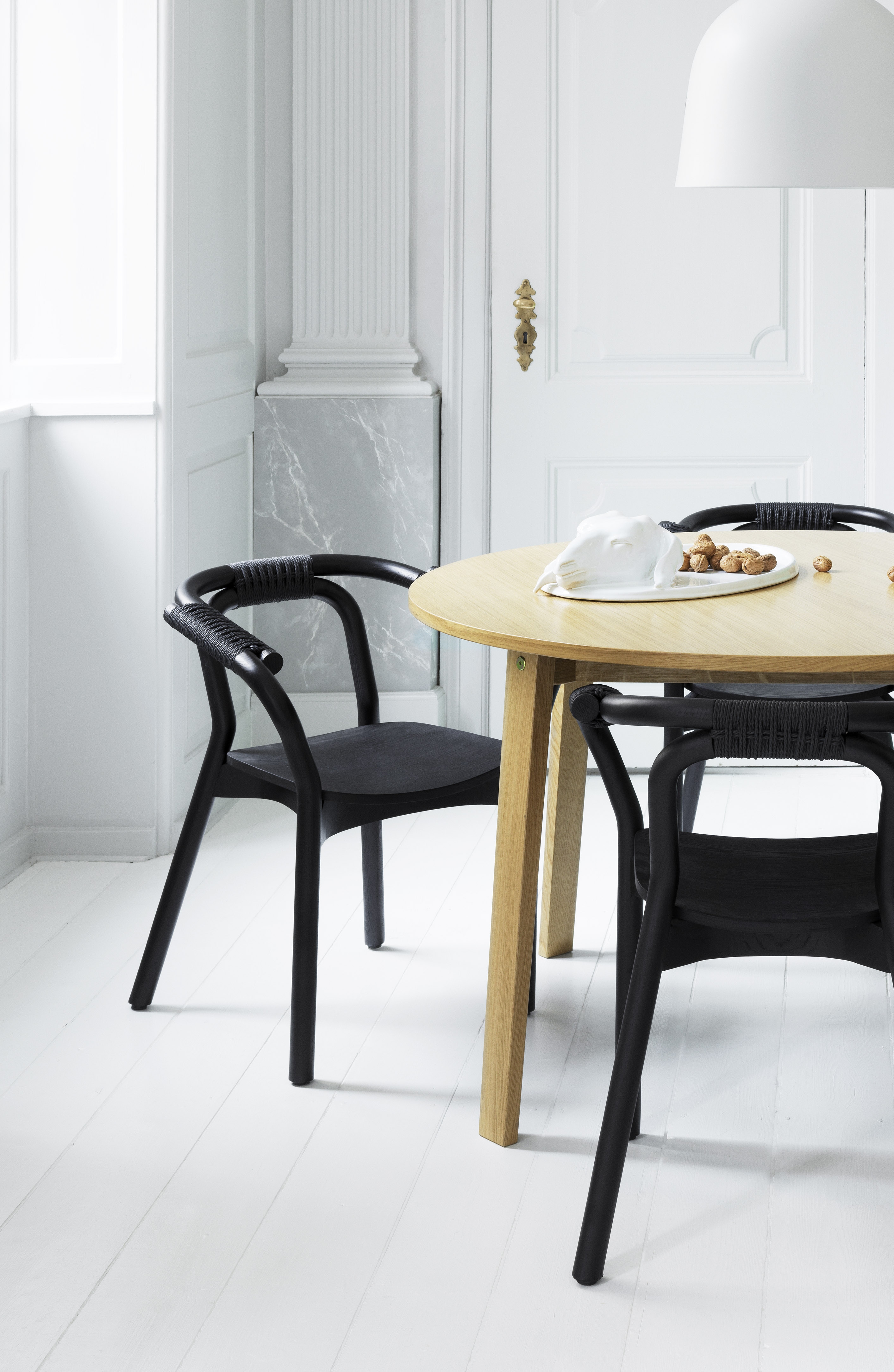 Стул Knot Normann CopenhagenKnot, разработанный Тацуо Курода для Normann Copenhagen, представляет собой стул, полностью изготовленный из древесины черного ясеня. Сиденье всегда изготавливается из слегка изогнутого дерева, а спинка и подлокотники — из трубчатого дерева, гармонично пересекающегося с конструкцией и скрепляемого переплетением бумажной веревки. Узел доступен в двух версиях: структура и детали из черной веревки или черная структура и детали из светлой натуральной веревки.