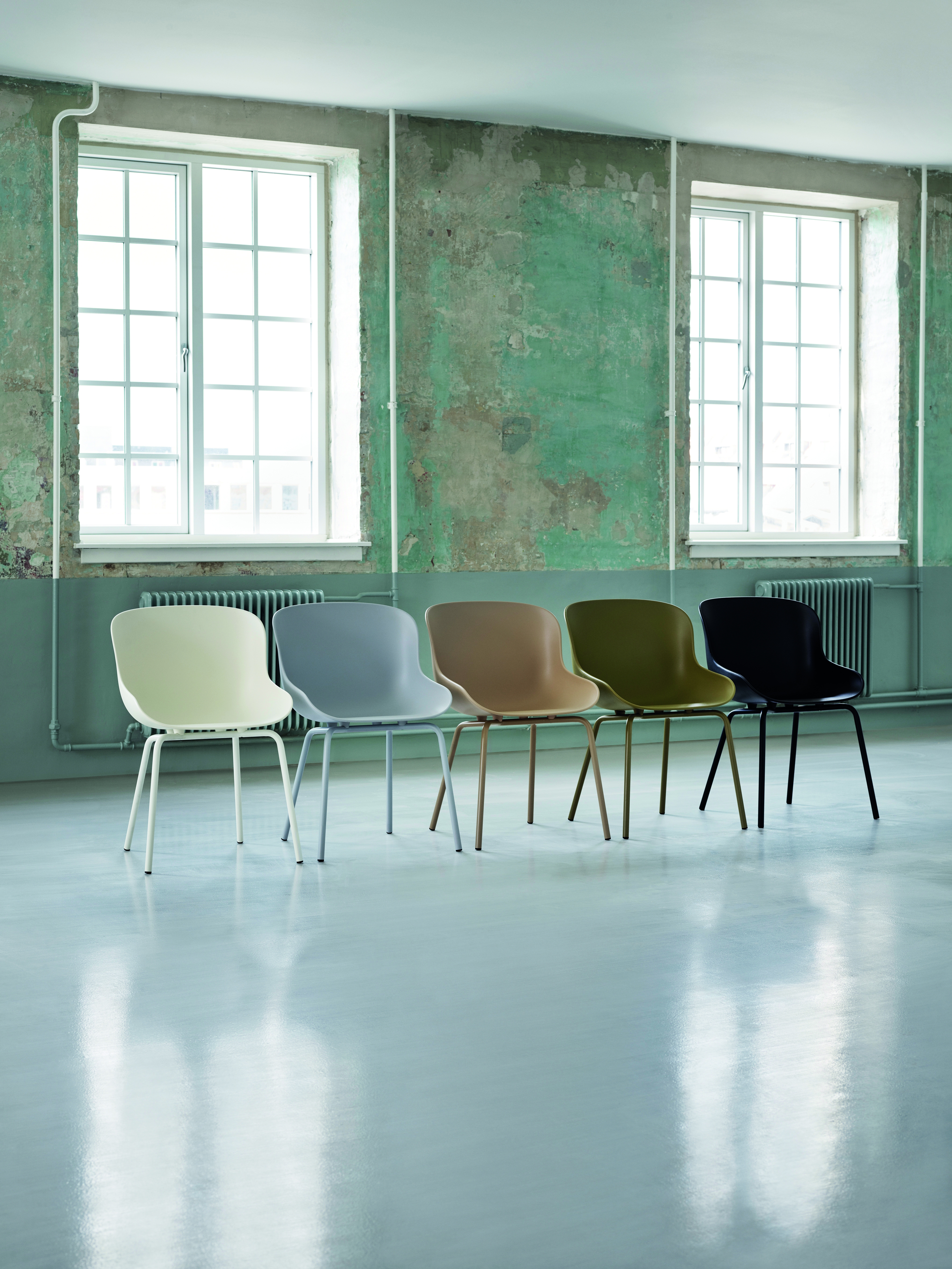 Hyg Normann Copenhagen ChairHyg, разработанный Саймоном Лильдом для Normann Copenhagen, представляет собой стул с полипропиленовым корпусом и несущей конструкцией из трубчатой стали. Hyg доступен в цветах серого, черного, белого, песочного или оливкового цвета.