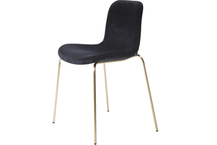 Стул Langue Stack Norr11 с мягким сиденьемLangue Stack, разработанный Руне Крёйгаардом и Кнутом Бенедиком Хумлевиком для Norr11, представляет собой стул с основанием из латуни или алюминия с черным порошковым покрытием и корпусом, покрытым кожей или тканью.