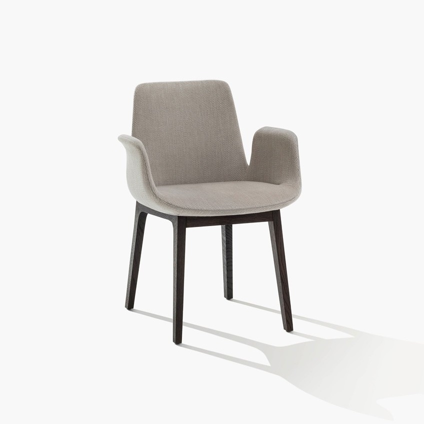 Стул Ventura с подлокотниками PoliformVentura, разработанный Жаном-Мари Массо для Poliform, представляет собой стул с подлокотниками, выполненными из массива дерева, сиденьем из гибкого однослойного формованного полиуретана и обивкой из ткани или кожи.