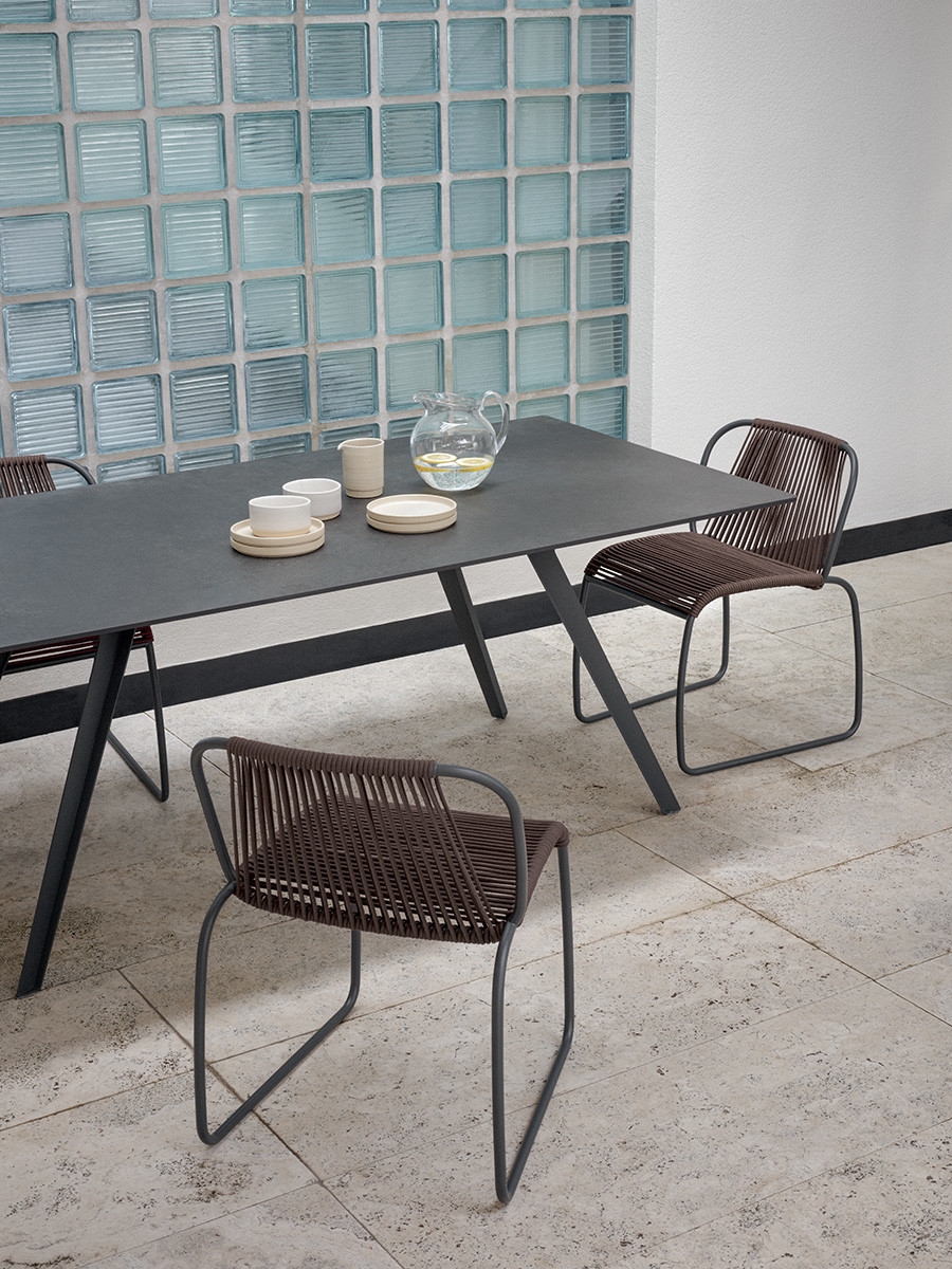 Стул Tibes PotoccoTibes, разработанный Грегорио Факко для Potocco, представляет собой уличный стул со стальной конструкцией с эпоксидным порошковым покрытием, на которой развивается сиденье, полностью сотканное вручную. Можно штабелировать до 4 стульев.