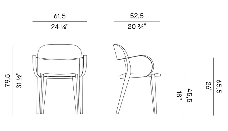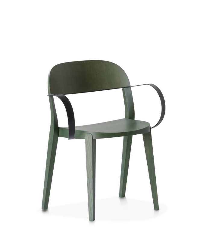Стул Minima Potocco с подлокотникамиMinima, разработанный Марио Феррарини для Potocco, представляет собой стул с подлокотниками, полностью изготовленными из окрашенного ясеня. Minima доступна в различных вариантах отделки, а также с сиденьем, полностью выполненным из дерева или с плетением из венской соломки.