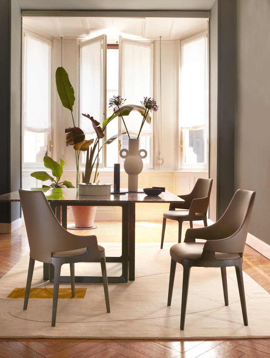 Velis Potocco ChairVelis, разработанный Марио Феррарини для Potocco, представляет собой стул с высокой спинкой и структурой из ясеня или ореха каналетто в различных вариантах отделки. Сиденье и спинка наполнены огнеупорным пенополиуретаном и обтянуты различными видами ткани, кожи или эко-кожи.