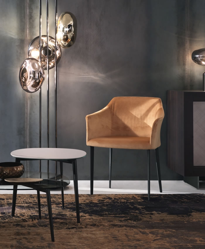 Стул Carmen RiflessiCarmen, разработанный Стефано Сандона и Сабриной Беттини для Riflessi, представляет собой стул с подлокотниками с гибкой полиуретановой подкладкой, полученной холодным формованием, и стальным каркасом. Рамная конструкция интегрирована в кузов. Ножки окрашены под алюминий, обивка из ткани или кожи. Доступен в различных вариантах отделки.