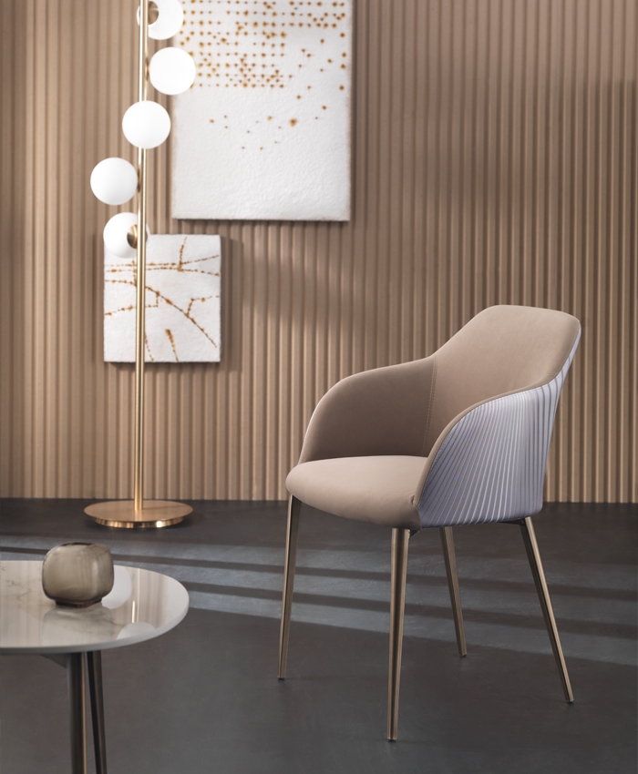 Стул Софии РифлессиСофия, разработанная Стефано Сандона и Сабриной Беттини для Riflessi, представляет собой стул с окрашенной металлической структурой и металлическими или деревянными ножками. Набивка из гибкого полиуретана холодного формования и несъемный чехол из ткани или кожи. По запросу внешняя оболочка из сатина. Доступен в разных моделях.