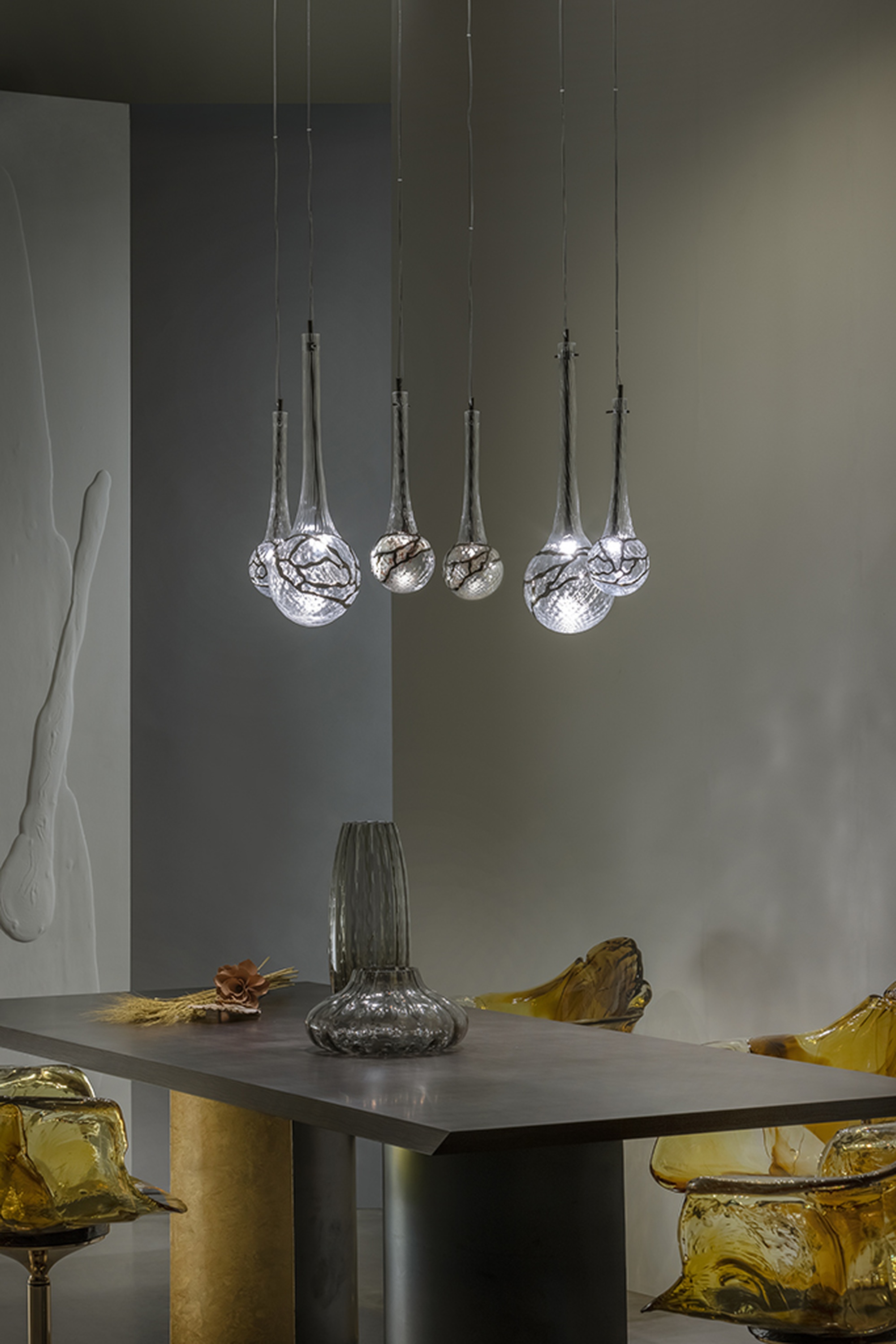 Подвесной светильник 210/SG Vetro Seta Bianco от Patrizia Volpato — утончённое решение для современного интерьера. Модель сочетает премиальные материалы и продуманный дизайн, чтобы стать центральным элементом вашего пространства.