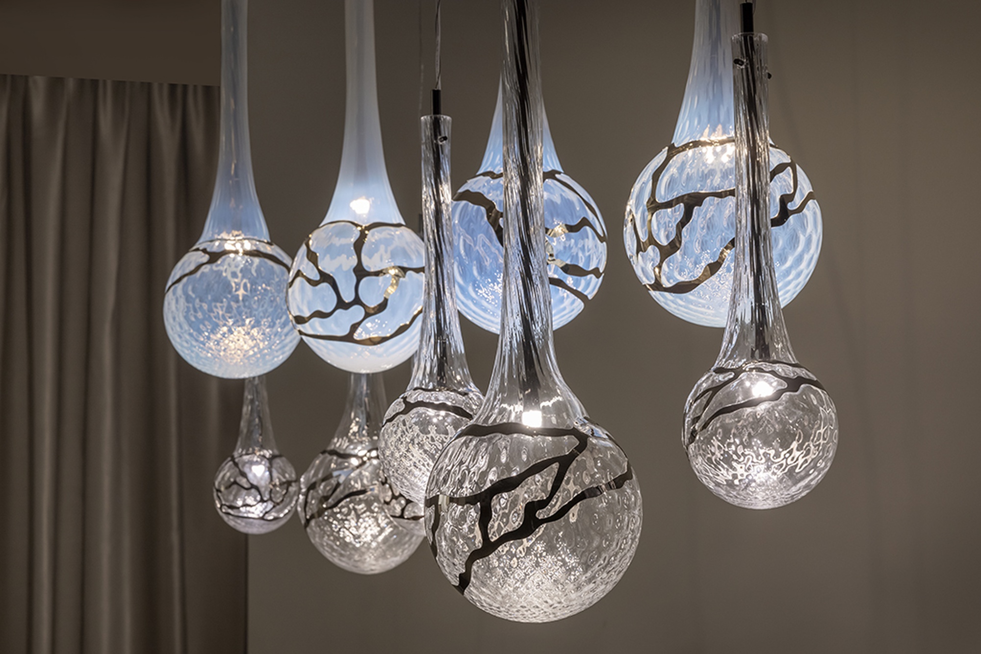 - стекло Vetro Seta Bianco (белый шёлковый эффект) создаёт мягкое рассеянное освещение;
