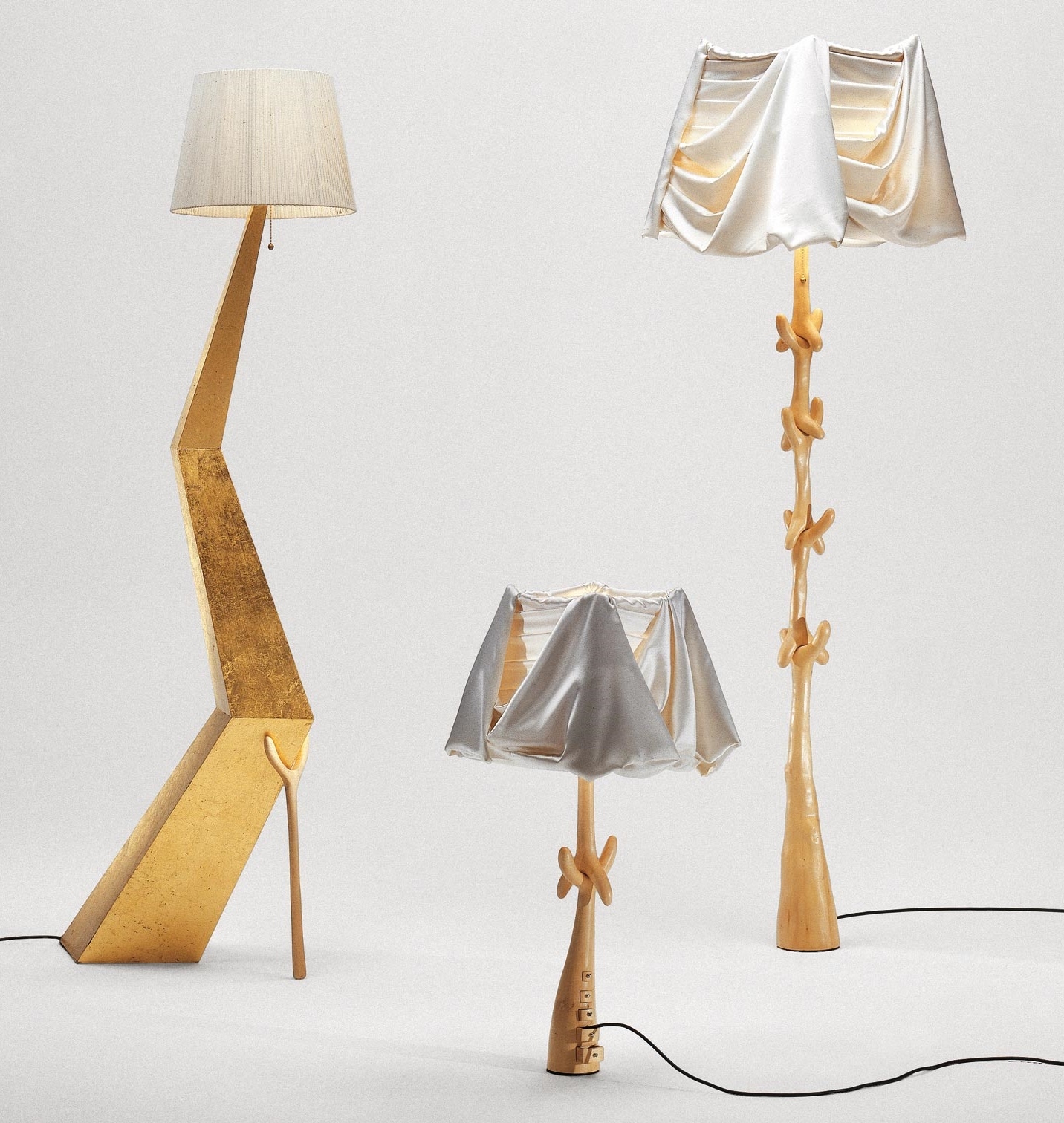 Торшер Bracelli BD Barcelona Bracelli, разработанный Сальвадором Дали для BD Barcelona Design, представляет собой торшер с деревянной дощатой конструкцией, покрытой тонкой позолотой, также доступной в более темной версии. Абажур покрыт хлопковой и вискозной тканью цвета слоновой кости.