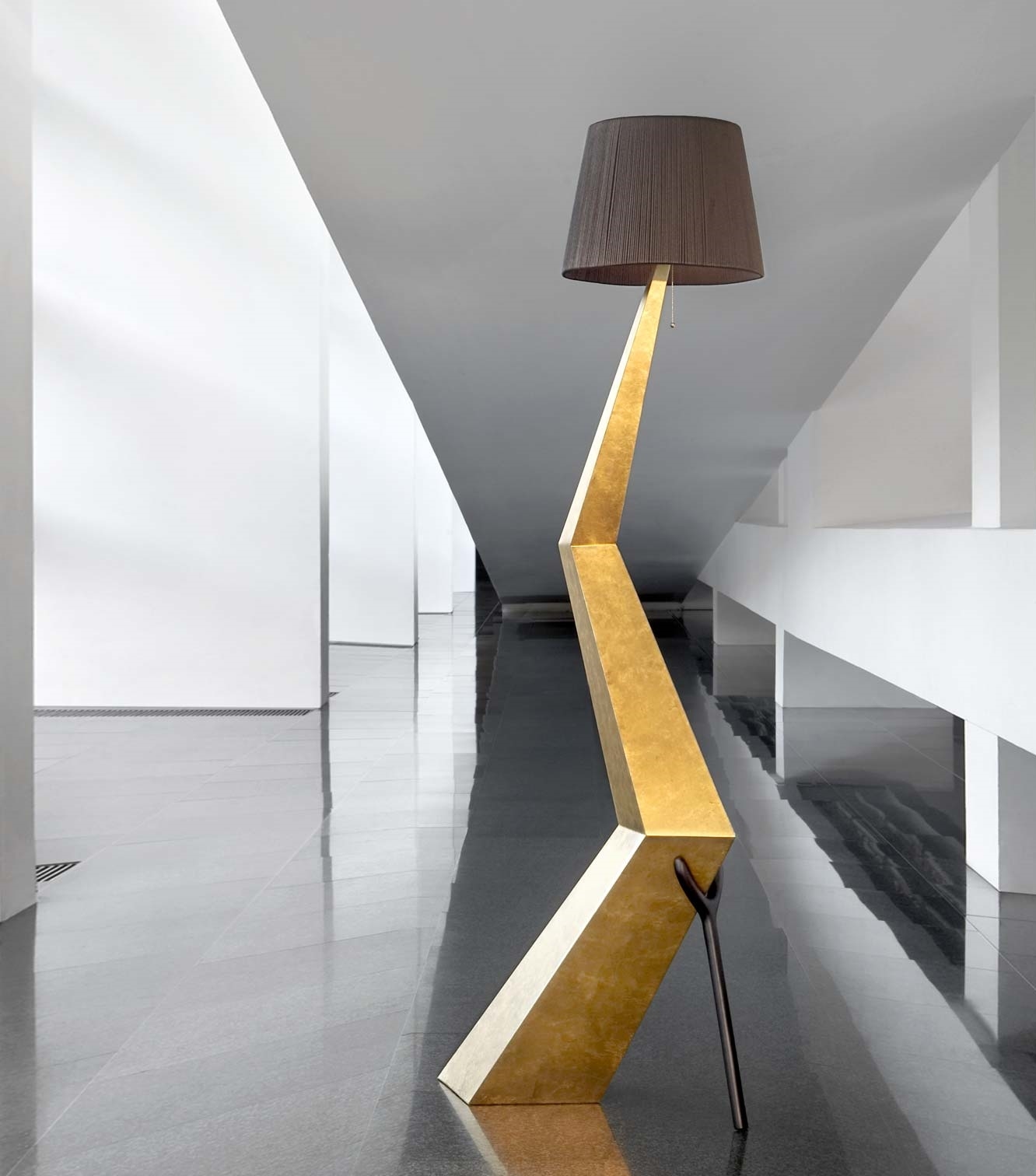 Торшер Bracelli Black Label BD Barcelona Торшер Bracelli, разработанный Сальвадором Дали для BD Barcelona Design, представляет собой торшер с конструкцией из деревянных досок, покрытых тонкой позолотой, доступный также в более темной версии. Абажур покрыт хлопковой и вискозной тканью цвета слоновой кости.